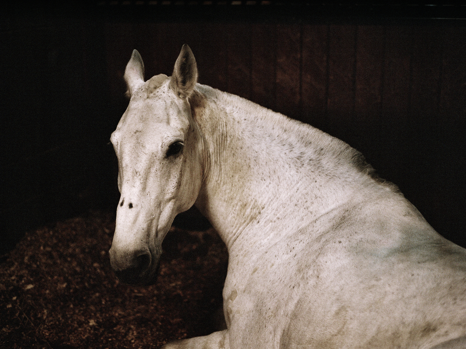 ‘Voor de serie Anima filmde en fotografeerde kunstenares Charlotte Dumas een groep van ongeveer 25 paarden die op een militaire begraafplaats in Washington leven. Eeuwenlang werden paarden fysiek ingezet voor oorlogsdoeleinden, maar vandaag de dag vervult deze groep een ceremoniële rol waarbij ze op dagelijkse basis voor processies en begrafenissen worden ingezet. Ze oefenen een ‘beroep’ uit dat is ontheven van de lichamelijkheid die we doorgaans met paarden en oorlogsvoering associëren, en dat geeft hun functie iets eervols, alsof het veteranen zijn.’