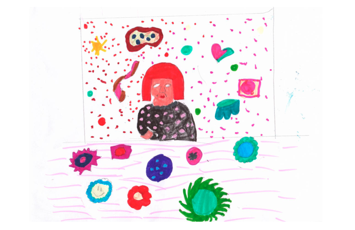 Yayoi Kusama vierde onlangs haar 88ste verjaardag maar maakt nog altijd nieuwe werken. Zij ziet al van kinds af aan overal stippen en deze zie je terug in haar creaties en verschijning. Maike vond het een prachtplaatje en begon gelijk fanatiek te kleuren.
