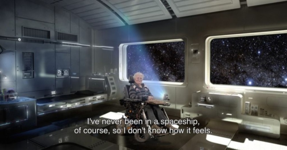 ‘In het kunstwerk van Melanie Bonajo zie ik een oma in een ruimteschip. Het ruimteschip zweeft in de lucht. Door het raam zie je allemaal sterren in het donker. Het is een grappig beeld om te zien. Ik denk dat de kunstenaar dit heeft bedacht om te laten zien dat opa’s en oma’s nog niet te oud zijn om de ruimte in te gaan. Ik ben het daar helemaal mee eens. Ik vind het leuk dat er een oma in een ruimteschip zit, in plaats van een kind. Ik vind het ook leuk voor die oma dat er een keuken in zit zodat ze kan koken. En dat er allemaal lampjes overal zitten zodat ze kan lezen. Zelf zou ik ook wel de ruimte in willen. Misschien doe ik dat nog wel, als ik oud ben. Dat lijkt me wel gaaf.’ – Kyano (9)