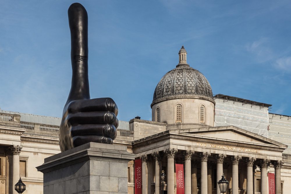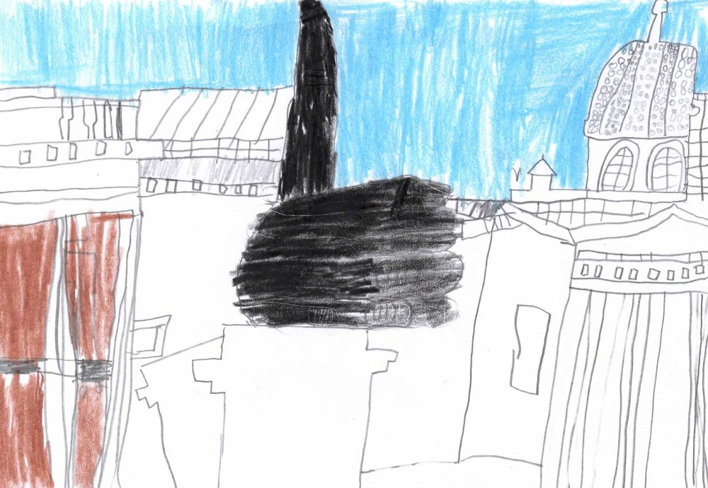 ‘Het kunstwerk van David Shrigley is een heel groot zwart standbeeld van een opgestoken duim. Het staat middenin een oude stad met een soort tempel die wel Grieks lijkt. De duim is heel lang. De kunstenaar heeft dit vast gemaakt om iedereen die voorbij komt een goed gevoel te geven. Met zo’n duim wens je toch iedereen een beetje succes. Als ik hier voorbij zou lopen onderweg naar school zou ik me heel blij voelen. Ik denk dat andere mensen er ook erg vrolijk van worden. Ik denk ook dat als er meer van dit soort kunstwerken waren, mensen misschien ook wat aardiger tegen elkaar zouden zijn. Het is een klein gebaar maar het heeft een groot effect. Ik wil de kunstenaar daarom een duim geven. Goed gedaan meneer Shrigley. Misschien kan de burgemeester van Apeldoorn zorgen dat er hier ook eentje komt? Dat zou top zijn. ‘ – Guido (10)
