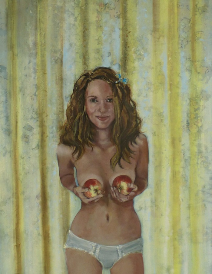 Nog sterker dan voor haar collages geldt dat voor haar schilderijen, omdat je daarin niet om de dingen heen kunt kijken om alles van voor en achter te observeren. In haar schilderijen zien we het verborgene frontaal aan ons gepresenteerd. In het schilderij van een bijna naakt meisje laat Marit Dik haar twee appels tonen die ze voor haarborsten houdt. Alles aan dat tafereel oogt onschuldig en onverdacht. Toch is het een hoogst ongemakkelijk schilderij, omdat het zich uitspreekt over argeloosheid en doortraptheid, over bekoring en verzoeking, over verlegenheid en schaamteloosheid.