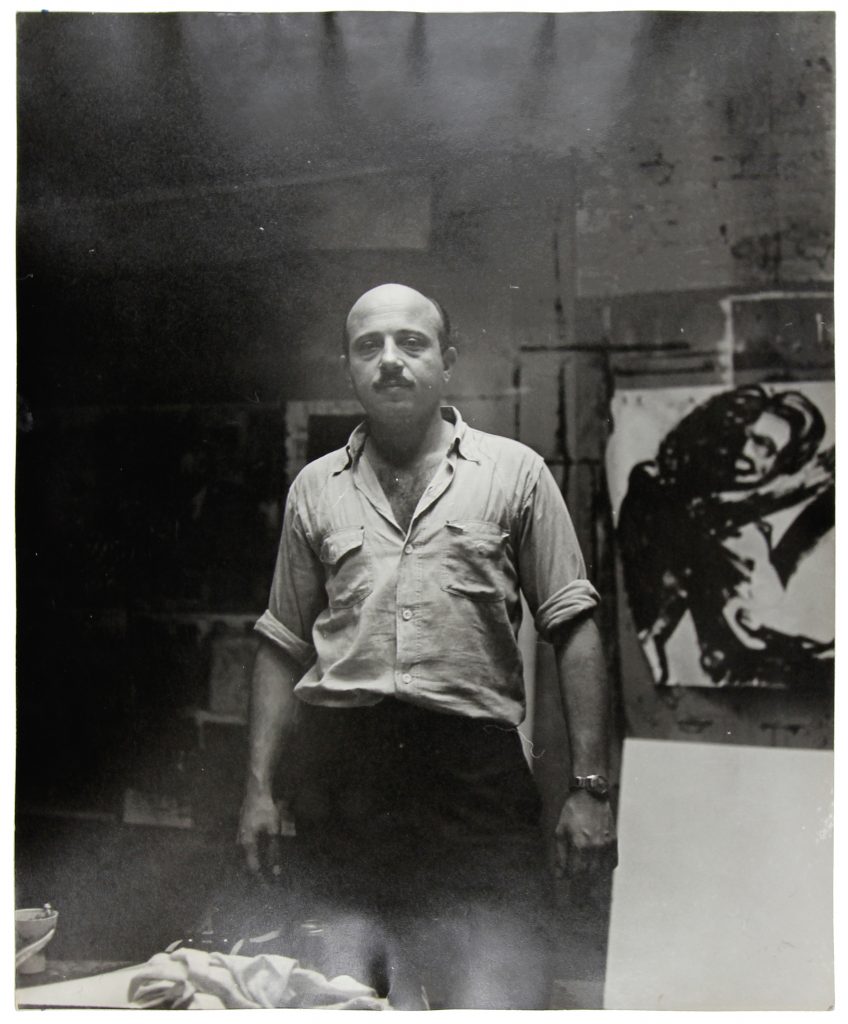 Boris Lurie groeide op in Riga, de hoofdstad van Letland. Toen hij zestien was werden zijn oma, moeder, zus en jeugdliefde door de Nazi’s vermoord in het Bloedbad van Rumbula, een verzamelnaam voor de executieplaats in bebost gebied op acht kilometer afstand van Riga waar de Nazi’s in totaal 38.000 Joden vermoordden. Samen met zijn vader werd Boris vervolgens gevangengezet in een reeks werk- en concentratiekampen. Een jaar na de bevrijding trok hij naar New York waar hij kunst begon te maken, vaak werken waarin hij expliciet getuige gaf van de gruwelen waarvan hij tijdens de Shoa getuige was geweest. ‘De basis van mijn kunstopleiding heb ik verkregen in kamp Buchenwald,’ zou hij later zeggen over de relatie tussen oorlogsverleden en zijn werk, en over zijn autodidacte achtergrond.