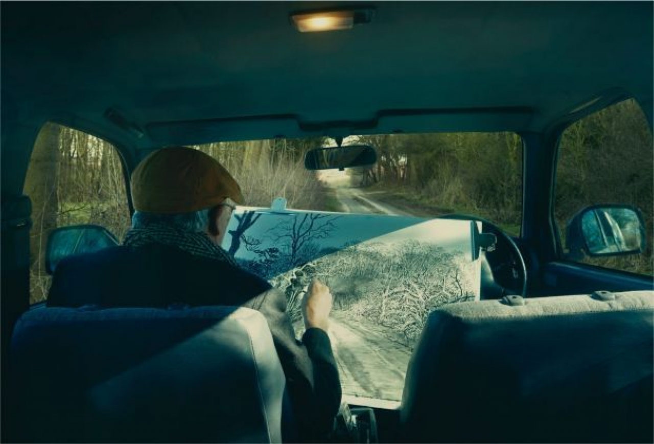 David Hockney heeft voor zijn tentoonstelling A Bigger Picture veel buiten gewerkt. In de verschillende seizoenen schilderde hij in de regio van Yorkshire het Engelse landschap. In zijn auto volgeladen met doeken en ezels ging hij samen met zijn assistent op pad. Als hij dacht op een geschikte locatie te zijn dan stopte hij de auto en stelde hij met zijn assistent op de bospaden zijn panelen op. Deze panelen werden later samengevoegd om zo grotere totaalwerken te vormen. Om de compositie van het totaalbeeld in de gaten te houden gebruikte Hockney fotoshop en een Ipad, ook heeft hij verschillende werken exclusief met zijn Ipad gemaakt. Hockney combineerde een ouderwetse aanpak (het schilderen van landschappen in de buitenlucht) met een originele manier van werken (het werk opdelen in panelen) en voegde daar het gebruik van digitale technieken aan toe.