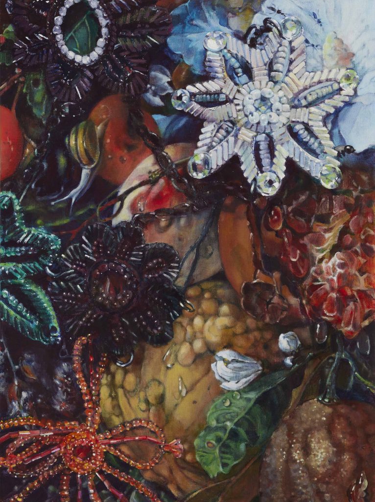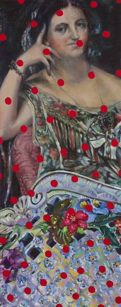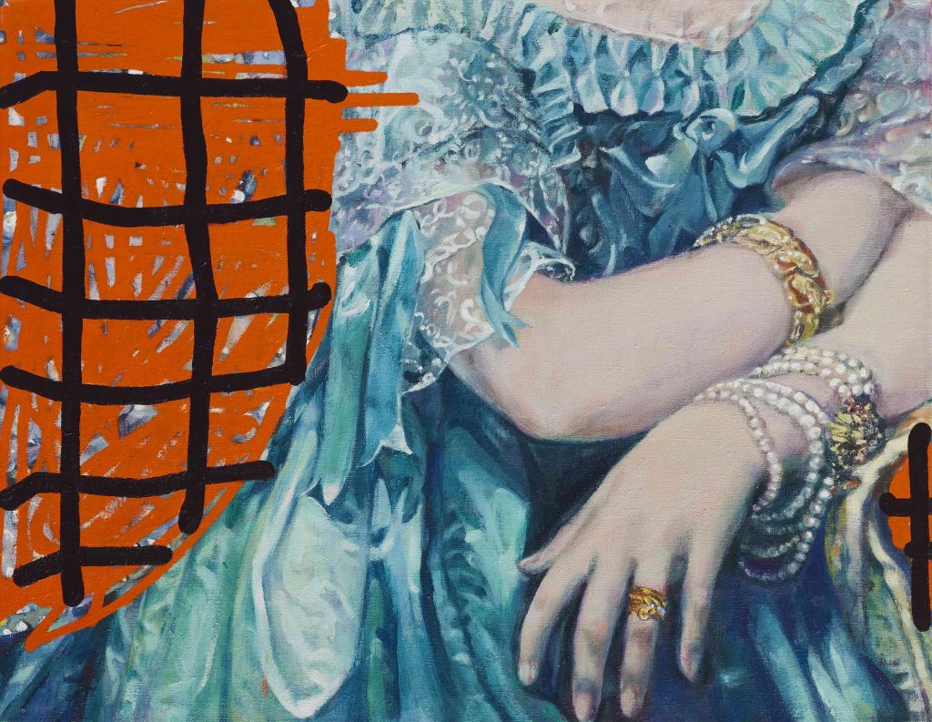 Het werk van Hanneke Gommers (Vught, 1960) verbeeldt voorbeelden uit de kunstgeschiedenis zoals die zijn gereproduceerd in populair drukwerk. Het levert overdadige schilderijen met complexe en kleurrijke composities op. Ze bekijkt die historische werken door de sluier van de tijd die er overheen is gevallen. Ze schildert er soms kralengordijnen of opengewerkt gaaswerk voor, zodat de oude schilderijen zich niet meteen prijsgeven.