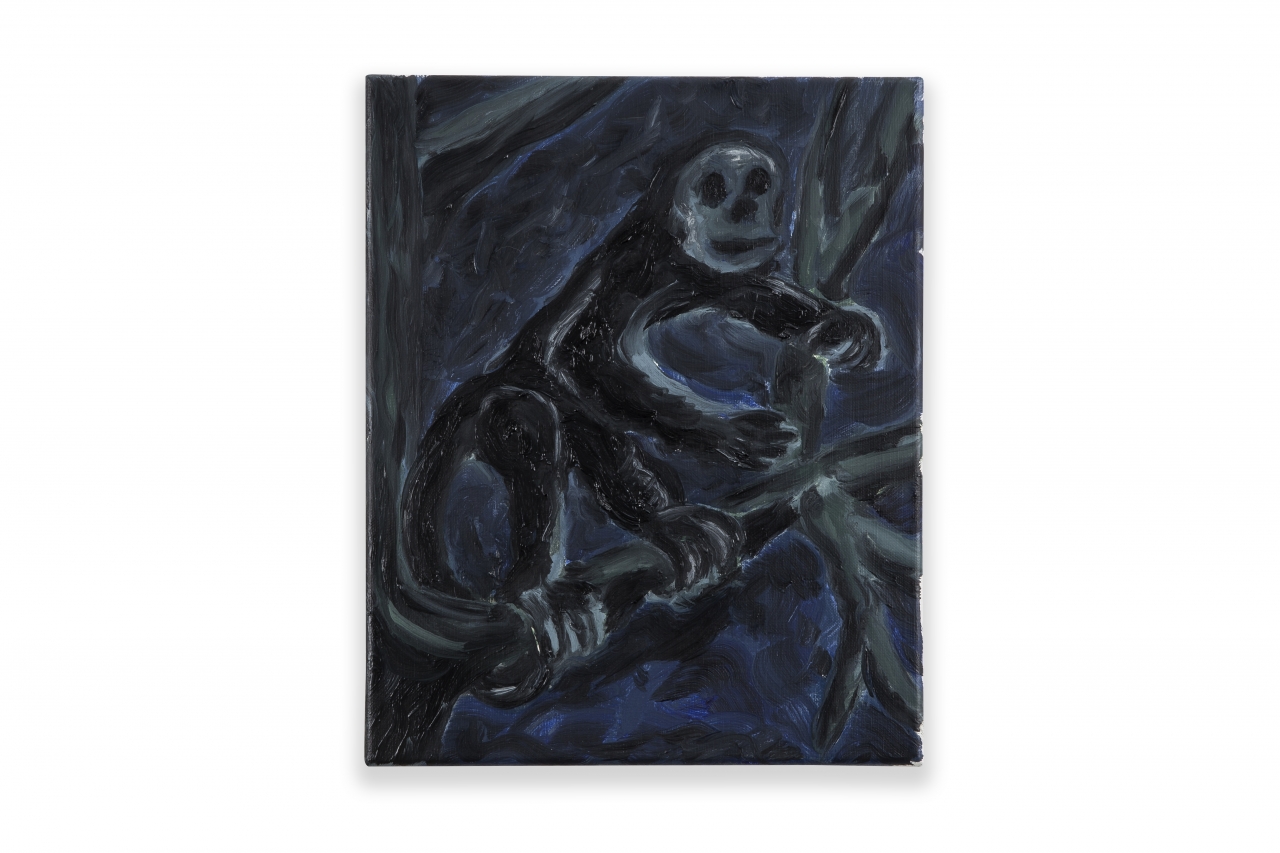 De smorende opa in het park is inmiddels nostalgie. Dankzij rookvrije zones en assertieve niet-rokers, die uiteraard het gelijk aan hun zijde hebben, wordt de roker verbannen uit de publieke ruimte. In de beslotenheid van zijn eigen huis doet hij echter precies waar hij zelf zin in heeft. Oost west, thuis best lijkt de boodschap in het schilderij Domestic Animal. We zien de kater van de kunstenaar die gewillig poseert voor zijn meester. Hij kijkt de toeschouwer uitdagend aan met gekrulde staart en gestrekte pootjes. ‘Wie doet me wat’ lijkt hij te willen zeggen. Zijn zwarte kattenlippen krullen van plezier omhoog, want daartussen zit een sjekkie dat het dier met veel smaak oprookt. Het leven is kort, laat ieder toch zijn pleziertje, lijkt de boodschap van de kater, de hond en het dampende aardappelmannetje in het park.