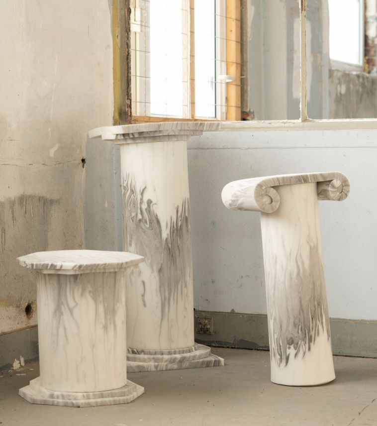 De Soft Pedestals van Bas Ruis bevestigen het belang van materiaalkeuze in de uitstraling van een standbeeld. In Ruis’ geval is de sokkel zelf het standbeeld en gelukkig maar, want in een ondersteunende rol is dit voetstuk minstens zo onbruikbaar als die van Nashat. Slechts de vorm van het beeld refereert aan een klassieke sokkel of zuil, het materiaal doet behalve onbruikbaar als ondersteuning ook wat uitstraling betreft geen eer aan de imposante zuilen uit de Klassieke Oudheid; de versies van Ruis zijn simpelweg te knuffelbaar om afstand te creëren tussen object en toeschouwer.