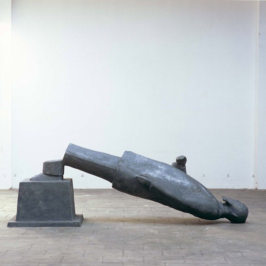 Een omvergeworpen standbeeld is met name een zichtbare, fysieke uiting van afschuw die een groep mensen voelt jegens de persoon die afgebeeld staat op de sokkel. Standbeelden worden opgericht om iemand te eren voor de eeuwigheid, vandaar het gebruik van zware materialen als natuursteen en edelmetalen. Fallen Dictator van Philip Aguirre y Otegui symboliseert zo’n innerlijke afschuw. Het beeld verwijst naar wijlen Belgische koning Leopold II, berucht om zijn wrede overheersing van destijds Belgisch-Congo. Het beeld is te gaaf om bestormd te zijn door een horde mensen, het lijkt niet ‘geknakt’ vanwege een fysieke omverwerping, maar alsof het beeld zelf is omgevallen. Hoewel meerdere beelden van Leopold II in België zijn bewerkt, beschadigd of omvergeworpen, is hij vooral van zijn voetstuk gevallen in de harten en hoofden van de Belgen, zo lijkt dit beeld te zeggen. De sporen die hij achterliet in Congo zijn onomkeerbaar, voor Philip Aguirre y Otegui leeft deze koning voort zonder troon.