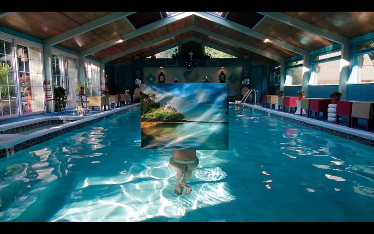 Een jonge vrouw trekt baantjes door een binnenbad. Haar naakte lichaam glijdt soepel door het water en glanst in het weerkaatsende zonlicht. Plots stopt ze in het midden van het bad, zet zich af en maakt een achterwaartse duik. De rug kromt zich en de schaamlipjes priemen kort en pront als accolades boven het wateroppervlak.