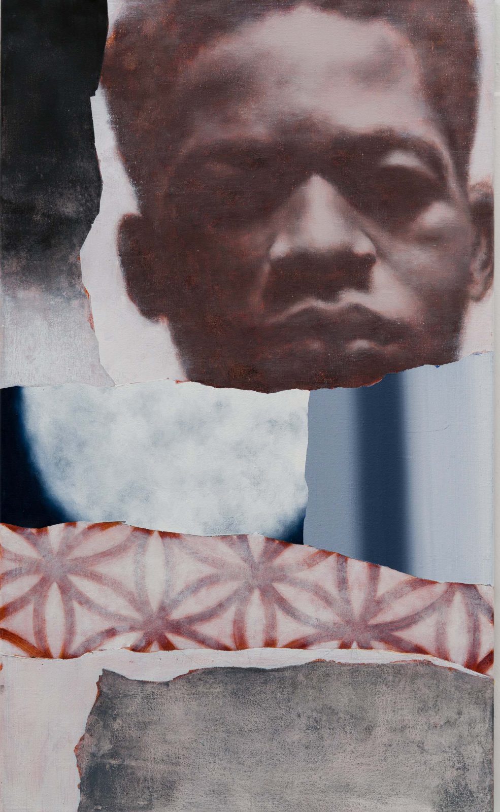 Voor de eerste editie van mijn reeks voor De Ontmoeting bezoek ik de Kunsthal in Rotterdam om het werk The Revisitation van Dion Rosina te bekijken. Het is een reflectie op zijn eerder gemaakte werk, van waaruit nieuwe configuraties ontstaan. Wanneer ik de hal binnenloop zie ik gezichten, maar ook abstracte vlakken en figuren afgebeeld op de muur. Ik ben enigszins bekend met Rosina’s praktijk en weet dat hij zich engageert met verschillende verhalen, zoals historische vertellingen en mythologieën, die hun oorsprong vinden in de Afrikaanse diaspora. Hij werkt hiervoor met archiefmateriaal en legt vanuit zijn eigen positionering verbanden bloot die hij weet vast te leggen in onder andere collages.