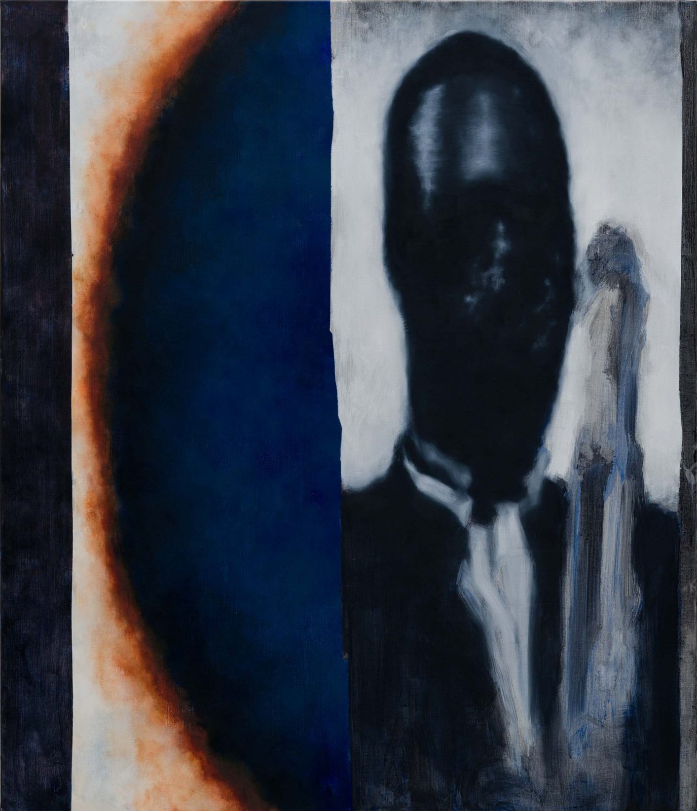 Het thema diaspora en specifiek de Afrikaanse diaspora trekt de 27-jarige Jaimy aan. Ze geeft aan pas meer recentelijk bezig te zijn met haar identiteit en het verwerken van de emoties en intergenerationele trauma’s die een resultaat zijn van kolonialisme en slavernij. Ze ziet veel schoonheid in dit werk. ‘In dit werk zie ik, zeker door het gebruik van de schaduwen, terug dat je altijd iets van je verleden en je roots overhoudt. Al zijn het bijvoorbeeld enkel de contouren van je gezicht, het brengt een familiariteit mee die ik ook voel als ik naar dit werk kijk. Ook al zijn de gezichten in het blauw afgebeeld, zie ik dat ik dezelfde uiterlijke kenmerken met hen deel.’
