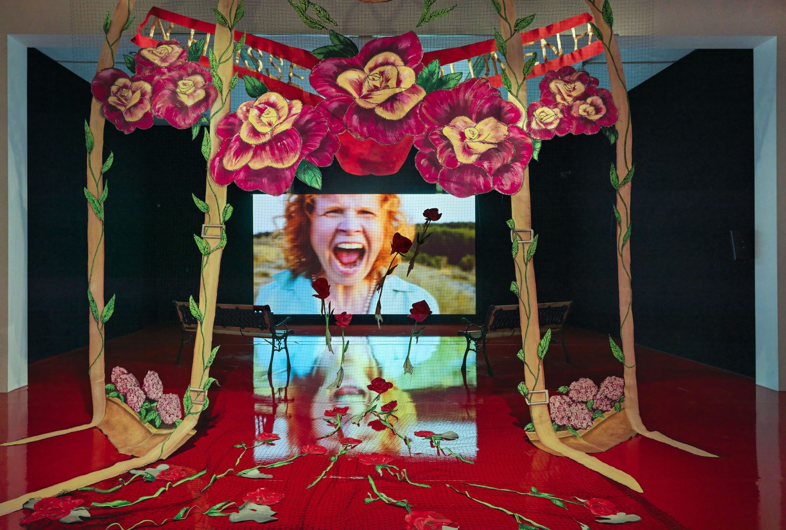 Hokjes? Die vermorzelt ze. De Franse, hedendaagse kunstenaar Pauline Curnier Jardin hekelt vrouwelijke stereotypering en gaat er dwars tegenin met Hot Flowers, Warm Fingers, die nu in het Centraal Museum in Utrecht te zien is. Lisanne van Sadelhoff bezocht de tentoonstelling met theatermaker Nina Spijkers (35). ‘Dit is zo vet. Dit is echt zó’n verademing.’