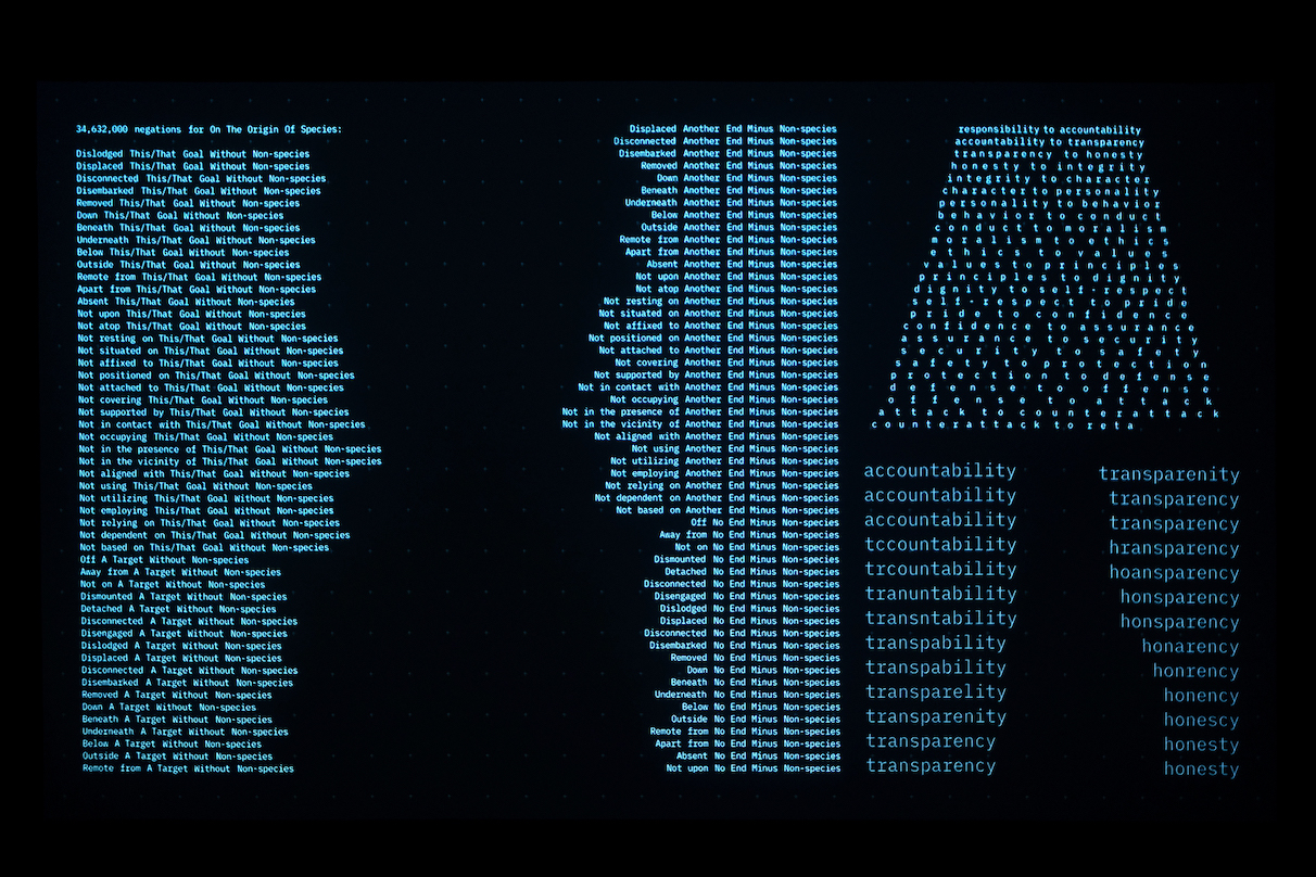 Negative Poetry is een kunstproject. De kunstenaar werkt erin samen met experts op het gebied van software en taalanalyse. Dat is tamelijk verrassend, omdat de studie van de werkelijkheid lange tijd vurig werd geclaimd door technologie en wetenschap. De kunsten waren gaandeweg uit de discussie verdwenen.