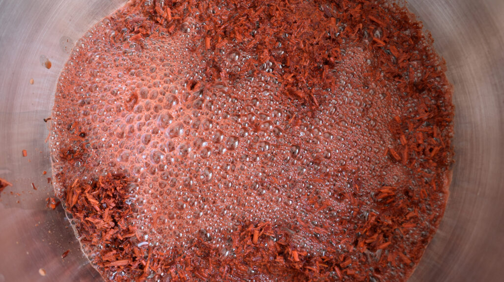 Aan ‘de magie’ van het kleuren van textiel met plantaardige pigmenten ligt een symbiotisch proces ten grondslag. Om te beginnen is het goed om te weten dat elke plant van zaadje af aan pigmenten bij zich draagt. Tijdens de groei worden deze kleuren gaandeweg beïnvloed door de materialen die de planten omringen. De zon, regen, mineralen en insecten waar zij een relatie mee aangaan, spelen een belangrijke rol. Wat interessant is, is dat deze kleuren niet altijd terug te zien zijn in hun (bovengrondse) uiterlijk. Een plant met gele bloemen kan bijvoorbeeld knalrode wortels hebben en sommige groene planten dragen blauw pigment. Zoals de bladeren van de Japanse Indigofera tinctoria, of de in Nederland goed gedijende Wede.