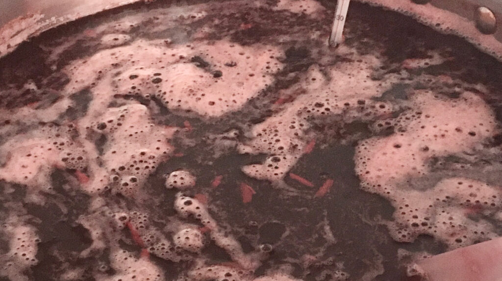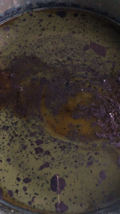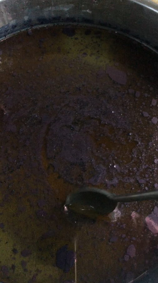 Het maken met materialen ervaar ik misschien wel het sterkst tijdens het plantaardig verven van textiel. Keer op keer verwonder ik mij over het scala aan kleuren dat zich vormt door het samenspel van ingrediënten in de verfpan. Het resultaat wordt bepaald door de eigenschappen van de plant, de stof, de temperatuur van het water, de zuurgraad, het materiaal van de pan of verfpot en de lepel waarmee geroerd wordt. Soms kan zelfs een klein klontje meegekomen aarde het verfbad van tint doen verschieten.