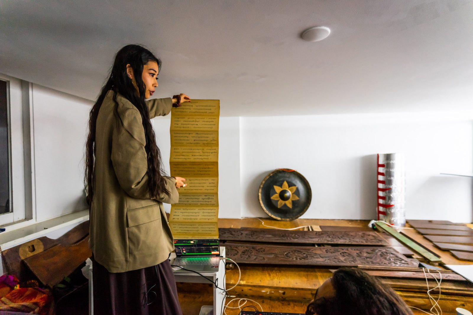 Op de vloer waar de Rotterdamse kunstenaar Samboleap Tol een kunstenaarsresidentie doet, ligt een stapel gegraveerde houten planken. Ze vertelt dat het de onderdelen zijn van een massieve Indonesische kist uit de jaren 50 – hiermee wil ze haar eigen instrument maken. Met een beetje moeite stap je over de planken heen om bij een Thaise gong aan te komen; bij een slag galmt een dof, laag geluid door de ruimte. Op tafel liggen boeken over Cambodjaanse en Boeddhistische rituelen, daarnaast een accordeonboekje uit Sumatra. De verwijzingen naar Zuidoost-Azië zijn overal.