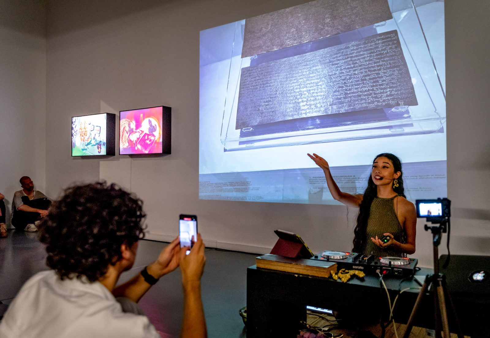 Samboleap Tol is de winnaar van de Dolf Henkes Prijs 2023, een stimuleringsprijs voor Rotterdamse kunstenaars. Roxane Soudagar ging met Samboleap in gesprek over de totstandkoming van haar kunstenaarspraktijk en de combinatie van performance, storytelling, muziek, dans, tekeningen, installaties, inscripties en creative coding die ze daarin toepast om een wereld te creëren waarin haar eigen ervaringen als kind van Cambodjaanse migranten in het westen, de verzwegen trauma’s van de generatie van haar ouders en de culturele tradities van Zuidoost-Azië, versmelten tot één geheel.