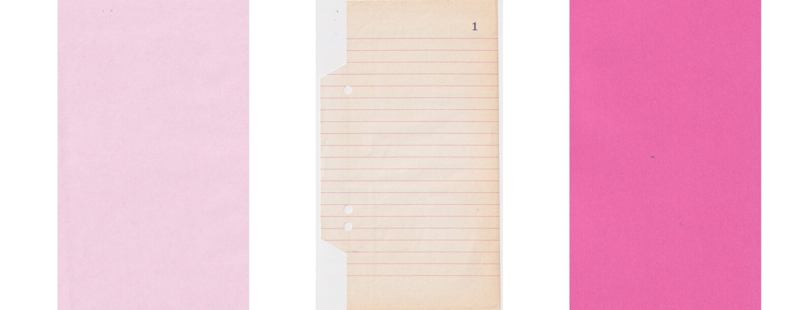 Hoe verder ik in het boek ben, hoe steviger de bladzijden worden. De eerste 21 pagina’s zijn bijna vloeipapier, terwijl de laatste pagina karton is. Hoe hangt deze keuze samen met de personages? Bijvoorbeeld bij de teksten over Het Meisje, die bijna allemaal op donkerroze, stevig papier gedrukt zijn – in tegenstelling tot de flinterdunne pagina’s van De Man?