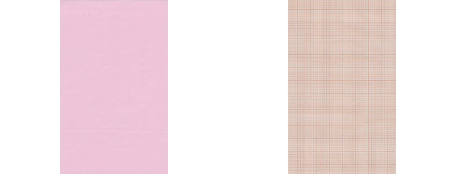Wij waren met veel meer en we waren ook een stuk groter: A3-formaat. Er is haast niemand van ons onbedrukt gebleven, vanwege de fibonaccireeks dragen wij een groot deel van personage Het Meisje. Voor zover ik weet houdt Het Meisje van dingen die van anderen zijn geweest; ze heeft vooral ‘voorgesleten spullen’. Ze noemt haar spullen zelfs ‘haar gejutte bezit’ wat nog maar eens benadrukt hoe belangrijk het voor haar is dat alles wat ze bezit een voorgeschiedenis heeft en dat het van een ander is geweest. Natuurlijk is het andere papier ook allemaal hergebruikt, maar wij heten ‘Obsession’ en hoewel we in een jaren tachtig-verpakking zaten, weten we niet hoe oud we werkelijk zijn. Ik denk dat dit mysterie belangrijk is geweest bij de keuze voor ons. Het papier waar we tegenaan gelijmd zijn (p. 194/195) heet ‘Store’ wat natuurlijk ook kan verwijzen naar het bewaren van spullen.