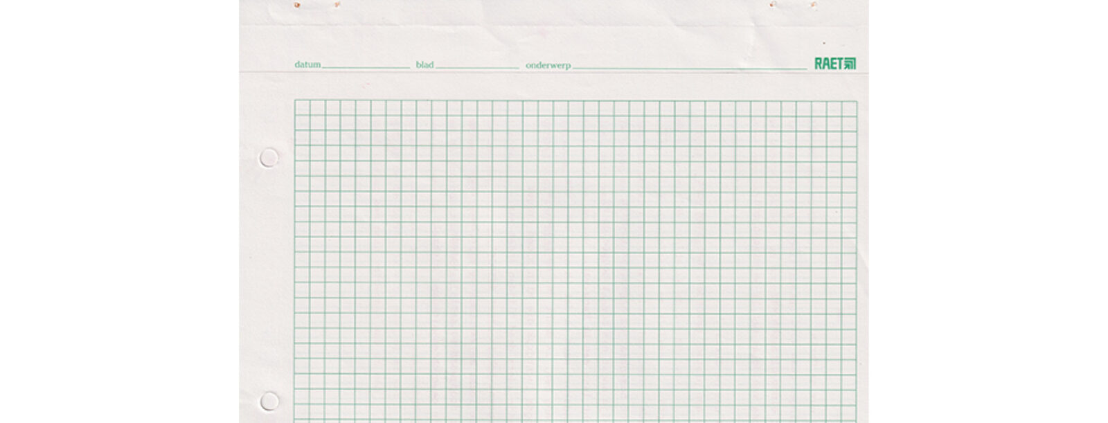 Tijdens het lezen valt het me op hoe verschillend de papiersoorten zijn. Op driekwart van het boek zijn twee ruitjesvellen ingevoegd met het logo van RAET erop, momenteel is dat een softwareleverancier voor salarisadministratie, dit papier is duidelijk nog uit het pre-digitale tijdperk.