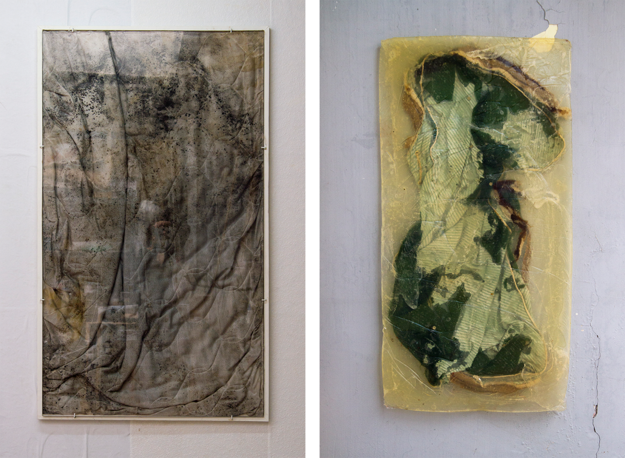 De schimmels op het matras in Heartaches By The Number zijn het zichtbare resultaat van het mensenleven dat het matras gedragen heeft tot het niet meer kon. Het matras was getuige van slapeloze nachten; eerste menstruaties; pizza’s eten in bed op brakke zondagen; van liefdes die komen en gaan en de tranen die ze teweeg brachten. Al die gebeurtenissen heeft het in zich opgenomen, tot het op een dag niet meer nodig was en het naast een vuilcontainer werd gezet. Latham heeft het matras ingelijst. Al die vlekken, al dat in textiel getrokken vocht en al die schimmels: zo vriendelijk verpakt en veilig achter glas wordt de schoonheid van het vieze, gore vanitas blootgelegd.
