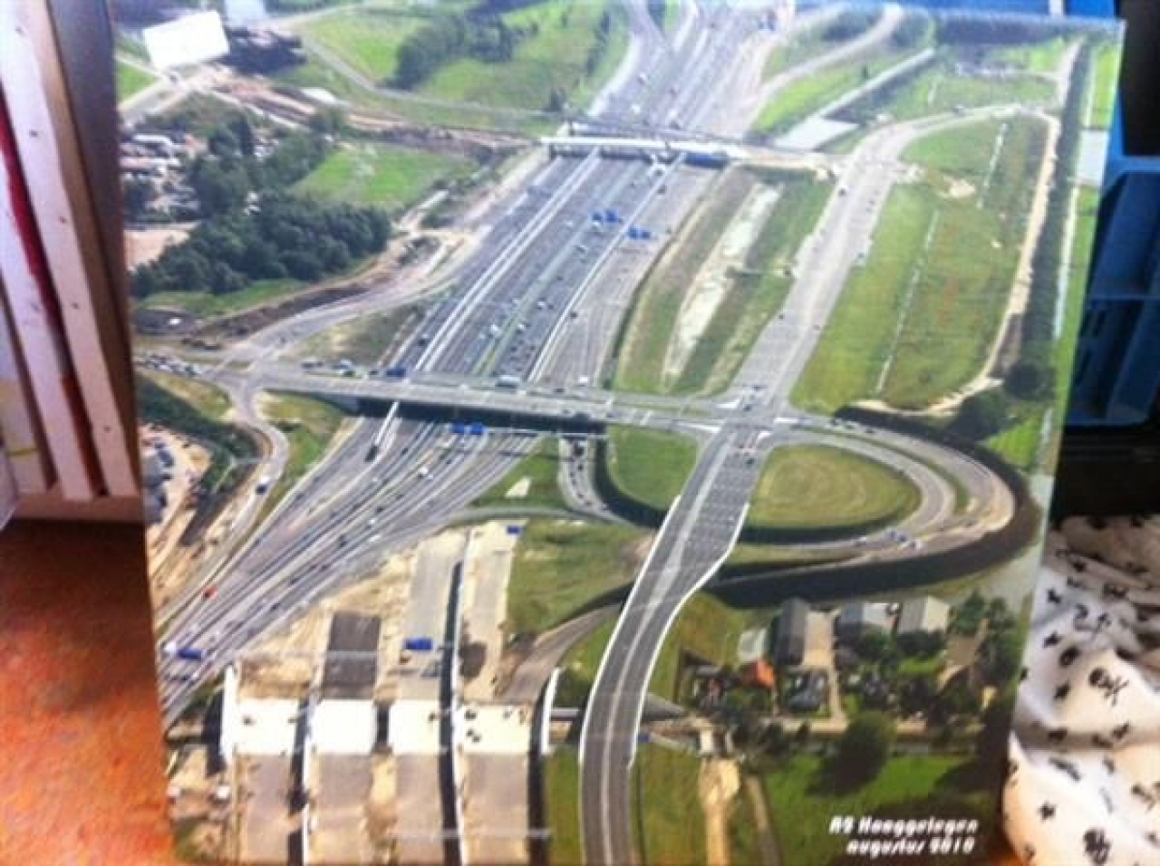 1: Een pittoresk snelweglandschap voor boven de bank. Veel meer van deze tijd dan het traditionele natuurlandschap of een zonsondergang.