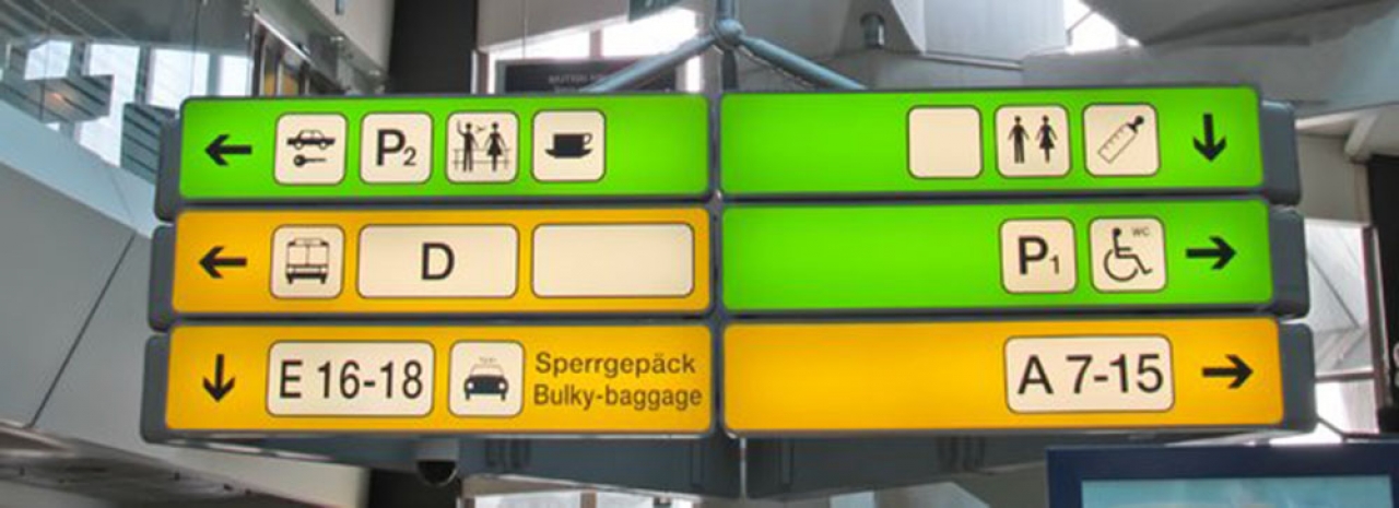 Halverwege de jaren zeventig ontwierp het Amerikaans Instituut voor Grafisch Ontwerp een set symbolen voor op vliegvelden, die reizigers met haast of zonder beheersing van de Engelse taal de weg moesten wijzen. Doordat het makkelijker werd om grote afstanden te overbruggen, kwamen mensen ook vaker in aanraking met vreemde talen. Pictogrammen voor het toilet of busstation boden een oplossing.