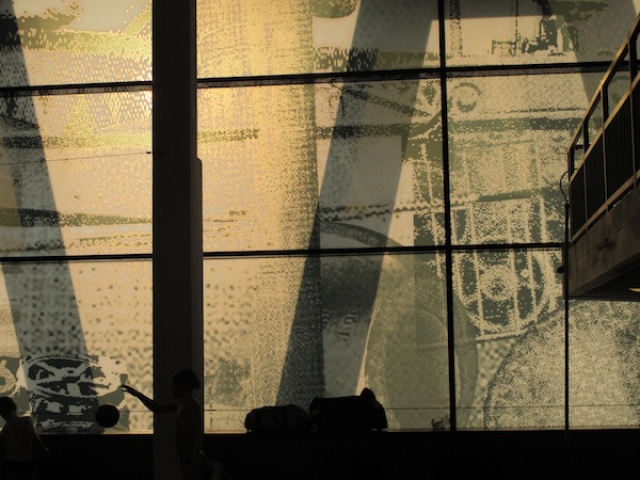 ‘Elke stad heeft onmiskenbaar een eigen gezicht, niet in de laatste plaats in de beleving van haar bewoners…’ (Lynch, 1960). Dit citaat prijkt boven de conceptplannen van Berend Strik voor zijn kunstwerk bij het zwembad. ‘Kunstenaars hebben oog voor culturele en cultuurhistorische waarden, essentieel voor de beleving van een gebied. De kunstenaar kan deze waarden accentueren en zichtbaar maken’ zo zegt hij. Als inspiratie voor het gebrandschilderde glas kiest Berend Strik de vooroorlogse periode, waarin de fabriek op volle toeren draait, en er nog maar weinig geautomatiseerd is. Voor de beeldtaal van het raam duikt Strik het archief in opzoek naar oude afbeeldingen van de arbeiders, de machines, de stookovens, de architectuur. De beeldbank die uit de zoektocht voortkomt functioneert als een abstract beeldverhaal dat wordt verteld door het zonlicht en het glas. Een verlichte geschiedenis. Al zwemmend doemt de industriële revolutie op, de arbeiders, tandwielen en stoom. Als het tapijt Bayeux, een laat middeleeuws wandkleed dat aan alle ongeletterden de slag van Hastings vertelt in een 70 meter lang borduurwerk, zo confronteert Strik de baantjestrekker met het fabrieksleven dat 130 jaar geleden op die plek ontstond. Hoe belangrijk is het om de geschiedenis van een plek te kennen? Is het fijn om te zwemmen tussen immense beeltenissen van arbeiders en tandwielen? Ik denk het wel. Op een prettige manier besef je dat er voorvaderen aan de plek hebben gebouwd, dat er gevierd en geleden is. Al deze elementen van de geschiedenis worden gecombineerd in het kunstwerk. Net zoals dat er over tientallen jaren misschien een leeg zwembad staat, waar we worden herinnerd aan alle kinderen die daar hun diploma haalden. Berend zegt peinzend: ‘Het is gek, naar mate ik ouder wordt denk ik steeds minder aan vroeger, alsof je leert steeds meer in het ‘nu’ te leven. Misschien is er aan iedere leeftijdsfase een periode verbonden, waarin je in de toekomst kijkt, het verleden en het heden.’ Geschiedenis leert je zoveel over het heden en de toekomst, het schept een kader om binnen te denken en te functioneren. Te beseffen wat er gebeurde, wat er al is bewerkstelligt, welke tendensen zich steeds weer opvolgen in de geschiedenis, dat te betrekken op het nu, ervan te leren misschien zelfs. Het biedt een breder perspectief op het persoonlijk verleden, het nu en de toekomst.
