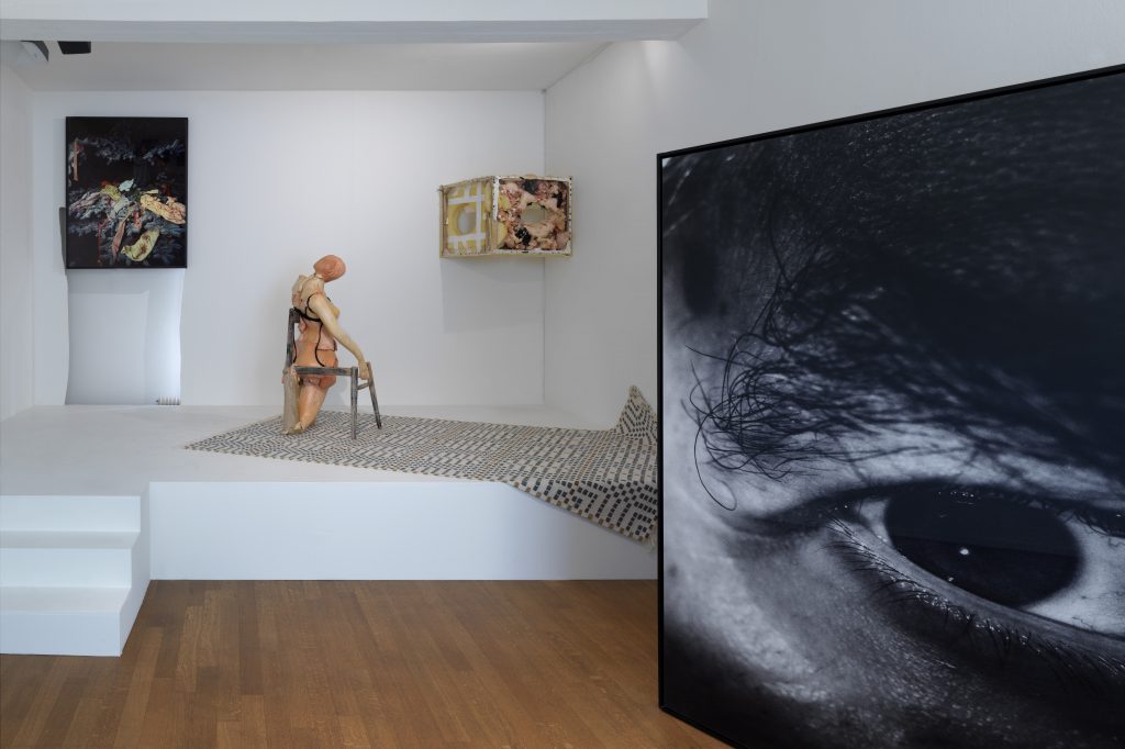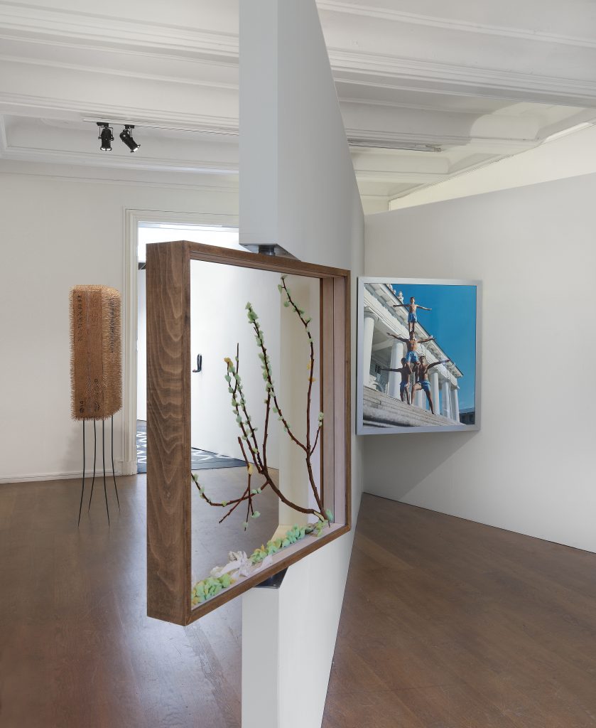 Het is een spel van ontleding waarbij de werken en de materialen waarvan ze gemaakt zijn hun rol ken baar maken. Lijsten van beukenhout, gehard glas, methacrylaat, maar ook het gewicht van de werken, hun afmetingen of de manier waarop ze zijn opgehangen worden benadrukt. Uit al deze elementen hebben we een soort ongemak bedacht dat de ruimte om elk werk kan transformeren. Zo kan een kunstwerk een deur zijn, een bank een ding dat op me wacht of een hellingbaan een instrument dat me aanspoort om te volgen. Het idee van hergeboorte bleek de sleutel te zijn. Een foto kan niet door muren heen gaan, maar de suggestie ervan maakt wel de poëtische kracht van dat beeld voelbaar.