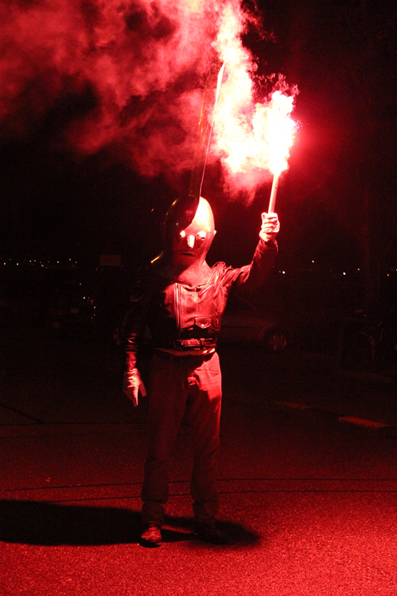 Vanuit mijn ooghoek zie ik rode flitsen die steeds dichterbij lijken te komen, de oplichter is in aantocht. Het ritme op de trommels wordt krachtiger, steviger en korter wanneer de aanwezigheid van de avatar voelbaar is. Het is alsof het getrommel de persoon iets wil vertellen, een gesprek aan wilt gaan of misschien de figuur juist wil verdrijven. De rode flitsen blijken een straal van vuur te zijn, gedragen in de hand van een donkere gedaante. De avatar die de oplichter wordt genoemd draagt een gigantisch masker, gemaakt van hetzelfde blik als de grote bladeren in de handen van zijn tegenspelers. Het masker kenmerkt een enorme glimmende hanenkam bovenop het hoofd waarin de vuurvonken extra worden geaccentueerd. Langzaam schuifelt de oplichter dichter naar de drummer en zijn kliek, in een fractie van een seconde vliegen deze op de oplichter af en omringen hem in een cirkel waardoor er nog meer vonken in de reflex van de bladeren verschijnen, als een explosie in een vuurrode zee.