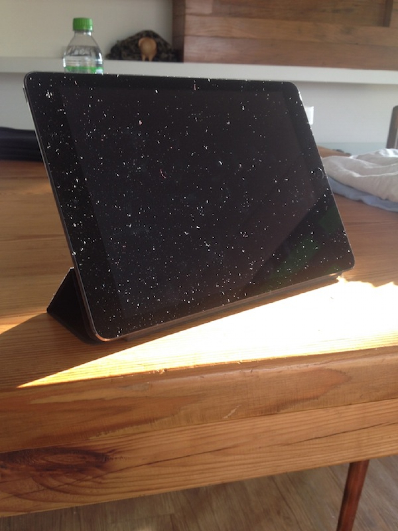 De eerste keer dat ik een ‘Accidental Universe’ zag., was ik met vrienden in een café en opende iemand de suikerpot. Op de zwarte tafel lag ineens een wit universum. Nu zie ik ze overal. Onder de tafel, als er een papiertje mee gewassen is, of als de ipad uitstaat en de luchtvervuiling van Sao Paulo er een constellatie op heeft gemaakt.