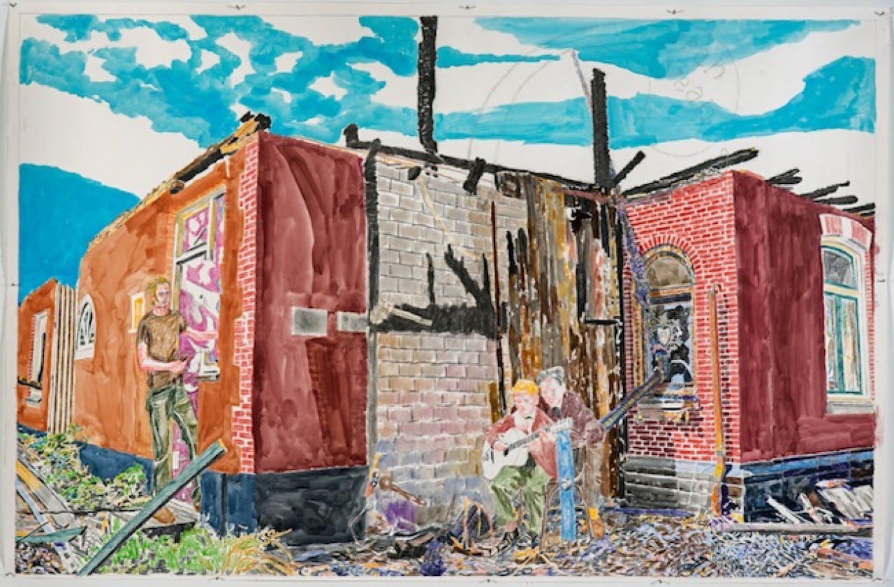 ‘Ondanks mijn tekeningen blijft mijn innerlijke ervaring aan mijn projecten knagen’ zegt Pedro, ‘Er is geen antwoord op mijn vragen over schuld en onschuld.