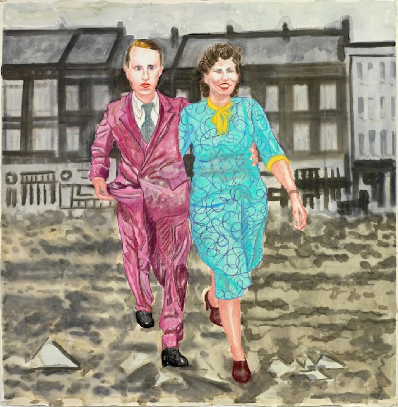 Daarnaast was er dus Bataille die zijn boek Guilty als volgt begint: ‘The date I start (sept. 5 1939 ) is no coincidence’. Zonder verdere uitleg noemt Bataille deze datum, want zo schrijft hij, het is onmogelijk om deze datum en verwijzing niet te noemen, de dag dat Duitsland Polen binnenviel. Pedro Bakker maakt tekeningen over zijn moeder, over het drama dat in zijn jeugd plaatsvond, omdat het onmogelijk is om het daar niet over te hebben. Eerder deed hij pogingen om zijn familie te portretteren in olieverf maar nu gesteund door Darger en Bataille lukte het Bakker beter om zijn kwetsbare geschiedenis op grote vellen papier uiteen te zetten en haar aan de buitenwereld te tonen ‘als een gebeurtenis zonder oordeel.’ Dat getuigt van moed want de ander staat snel klaar met een mening, over zijn moeder, over zijn manier van tekenen, over het onderwerp dat sommigen misschien te narratief of te persoonlijk vinden. Hij wordt een outsider genoemd maar waarom is niet duidelijk. Pedro Bakker is eerder een man die voor de troepen uit loopt, die zijn persoonlijke verhalen schilderde toen dat nog niet geaccepteerd was in de kunstwereld. Daar heerst een angst voor het autobiografische want het zou de betekenis van het kunstwerk beperken, het zou een vernauwde blik op de werkelijkheid geven in plaats van haar te verruimen. Niet modern ook. Maar er is geen intensere manier om vragen rondom schuld en onschuld en de wreedheid van het leven te formuleren dan in de vertaling van het ondenkbare, persoonlijke verhaal van Pedro Bakker naar een tekening.