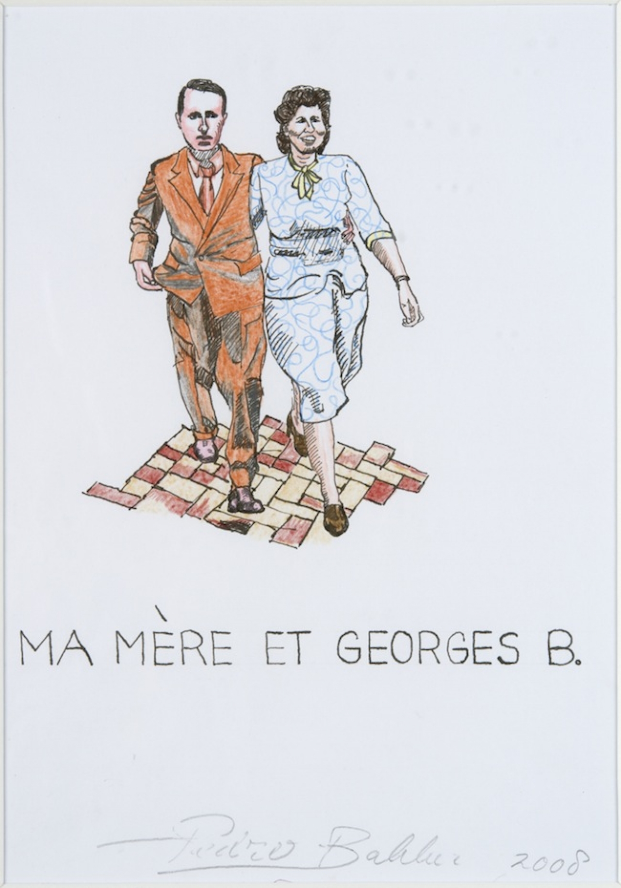 Al in 2008 maakte Pedro Bakker zijn eerste tekening met de titel Ma Mère et Georges B. op een A-viertje met pen, inkt en kleurpotlood. Gearmd lopen ze de kijker en hun toekomst tegemoet, de moeder steekt een arm fier naar voren, Georges B pulkt aan zijn jas in een ambigue handeling.
