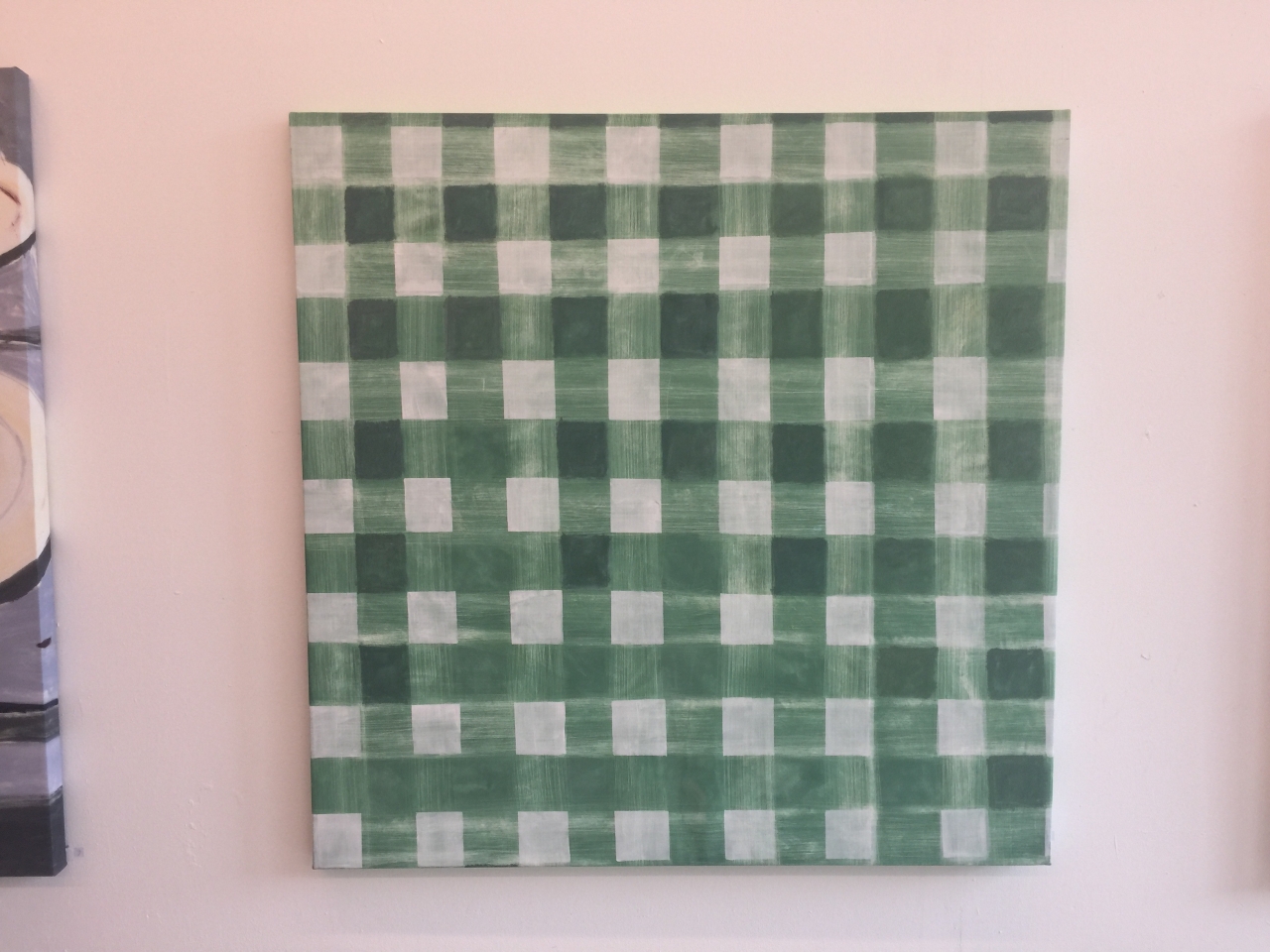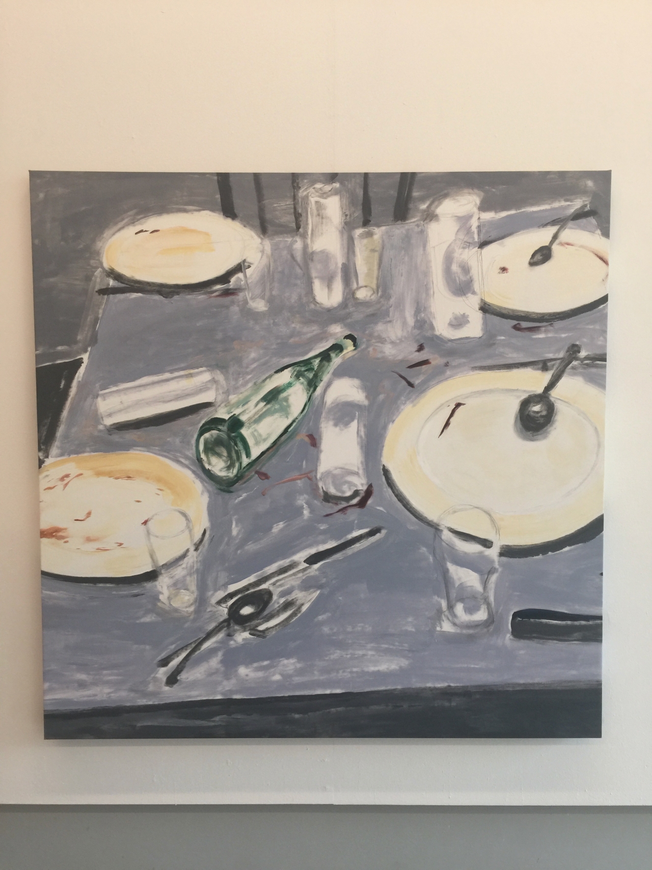 Een echte schilder is Karel Leusink, die een serie schilderijen heeft gemaakt met het onderwerp de tafel. Alles wat er op en rond de tafel gebeurd is zijn aanleiding om de werken te maken. Wat ik aan zijn werk interessant vind, is de grote variatie aan technieken en stijlen en de zoektocht naar de juiste sfeer. Dit alles in het uniforme formaat van 148 x 148 cm. Echt iemand die gestudeerd heeft en nog geen duidelijke eigen uitspraak doet. De vraag is waar dit in de toekomst naar toe gaat.