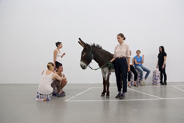 The relationship between the theater stage and the zoo cage extends beyond the looker and the looked-at dichotomy. Animals in captivity, too, pose questions of identity and consciousness, and symbolize human societies’ exploitative and controlling intentions towards nature. On stage, the learned and rehearsed behavior can be endlessly replicated to varying degrees of similitude. A cage is an artificially constructed habitat like the theater stage; early zoos—as they once existed in the gardens of royalties—were, in fact, considered the first theatres of the wild, where animals forcibly rehearsed animal-ness. The repetitive nature of rehearsing a text is reminiscent of behavioral conditioning; dramatic works with animals on stage inherently display the conditions of their production, lending a macabre unpredictability to the pieces. The well-learned animals turn these live events into a critical appraisal of their context by way of mocking the painstaking lengths actors go to embody their own characters.