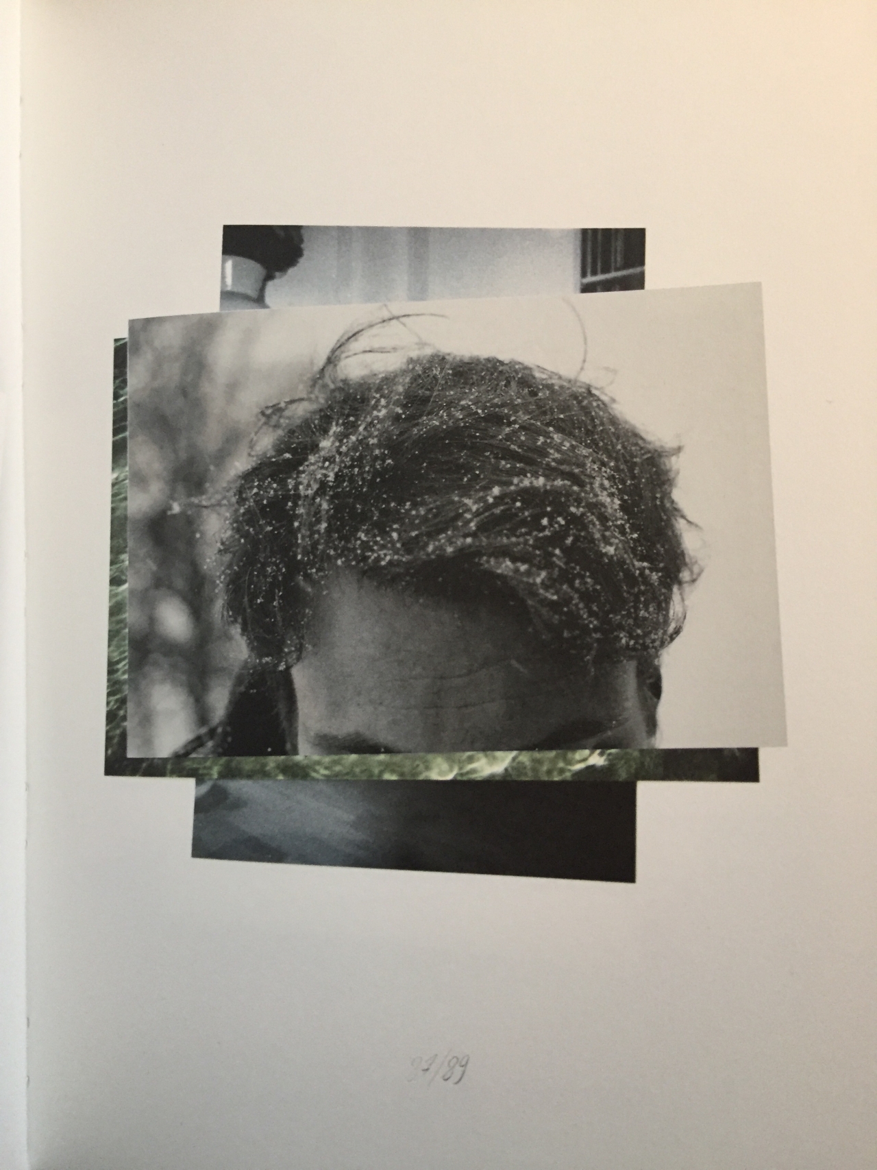 Al deze persoonlijke herinneringen komen naar boven wanneer je het fotoboek ‘All of these images are the outcome of certain observations’ van Liza Wolters bekijkt. Het boek van Wolters bestaat uit 89 foto’s uit haar privé collectie. Het zijn foto’s van alledaagse dingen: een kamerplant, een bloementuin, gefrommelde kleren op bed, een man op een balkon, een grasveld. Het zijn objecten en dingen die je elke dag tegenkomt. Bij het zien van de foto’s denk je na over je eigen observaties. Je ziet je buurman het balkon oplopen en de planten water geven. Je ziet het grasveld naast je huis. Je ziet je stapel kleren op je stoel in je kamer -je ziet de onvolmaakte schoonheid van de dagelijkse dingen. Het zijn opvallendheden die zo gewoon lijken, en dat ook zijn. Juist daardoor zijn ze ook weer zo bijzonder, want die momenten kunnen vervliegen. Daarom maken we ook foto’s, om iets vast te leggen wat ooit kan verdwijnen. De observaties van Wolters laten zien dat het nodig is om stil te staan bij het gewone, het pure alledaagse. Omdat ieder woord afbreuk doet aan de stille schoonheid van het alledaagse heb ik gedichten geraadpleegd, om zo, bovenop de subtiele observaties van Wolters een extra filter te leggen.