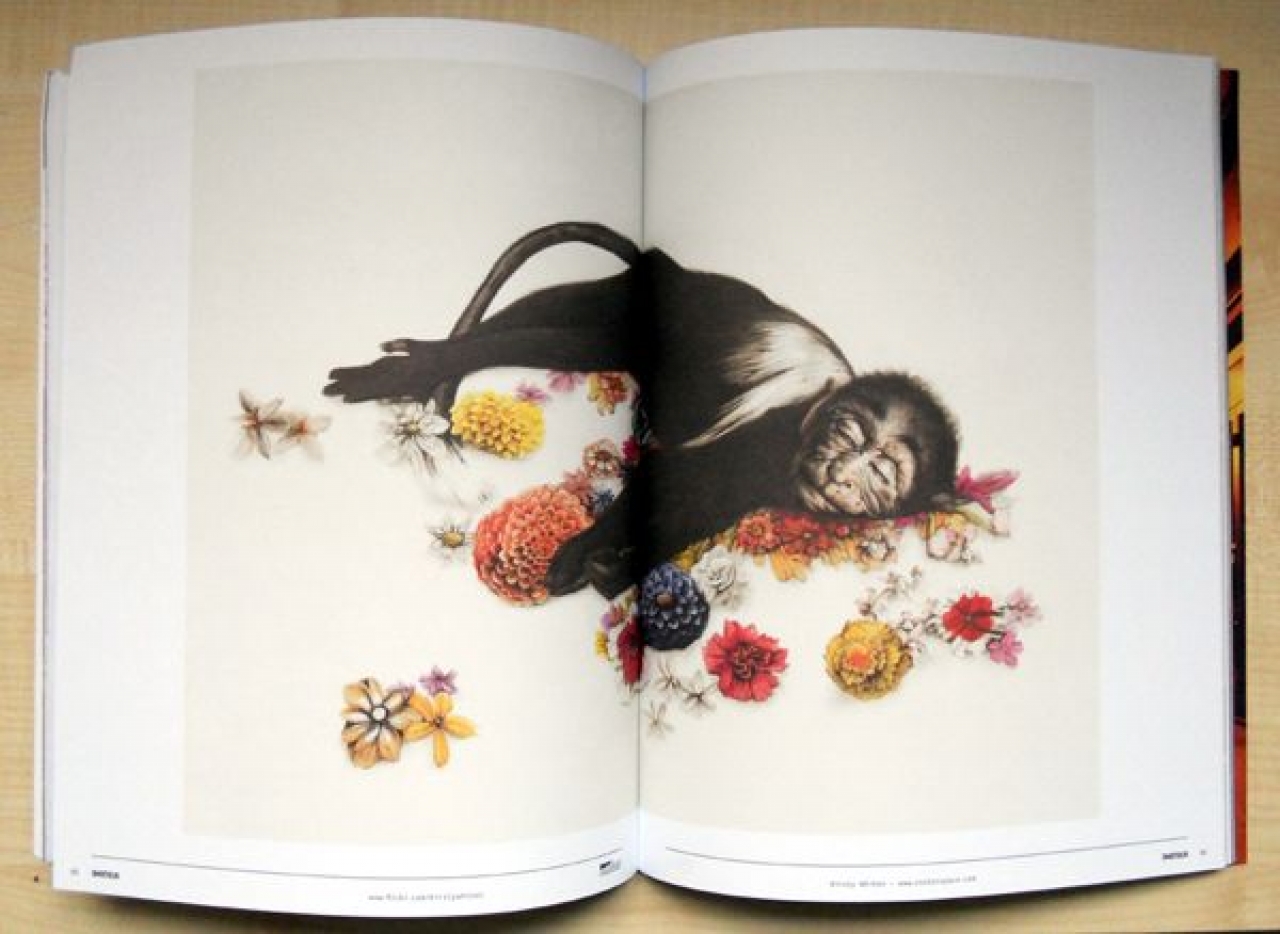 Naast de interviews staat er niet veel tekst in het tijdschrift. Geen lange artikelen dus, maar vooral veel beeld en interessante beeldende experimenten. Zoals een spread die gemaakt wordt door drie kunstenaars: een kunstenaar maakt een tekening dat in het midden van de pagina gaat. Deze tekening gaat naar twee afzonderlijke kunstenaars die aan de hand hiervan ieder een illustratie maken. Het geheel wordt in het blad samengevoegd. En dit is dan het resultaat: