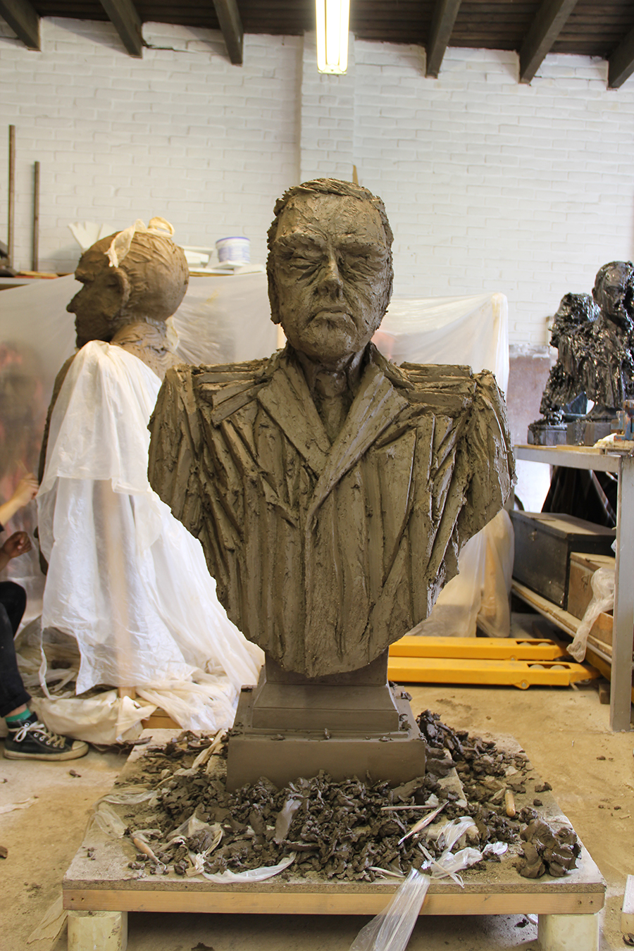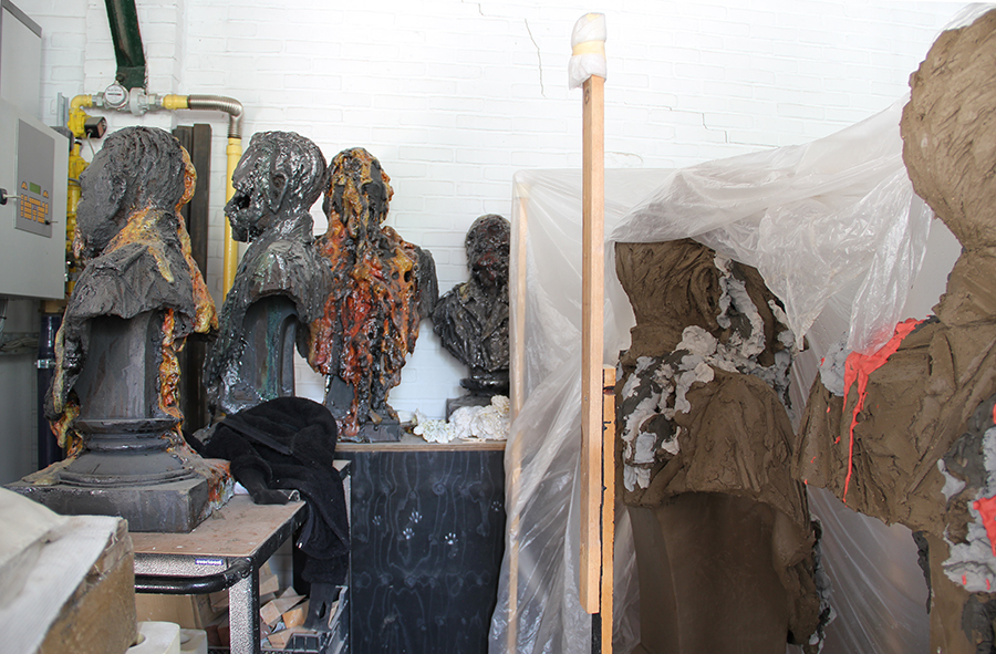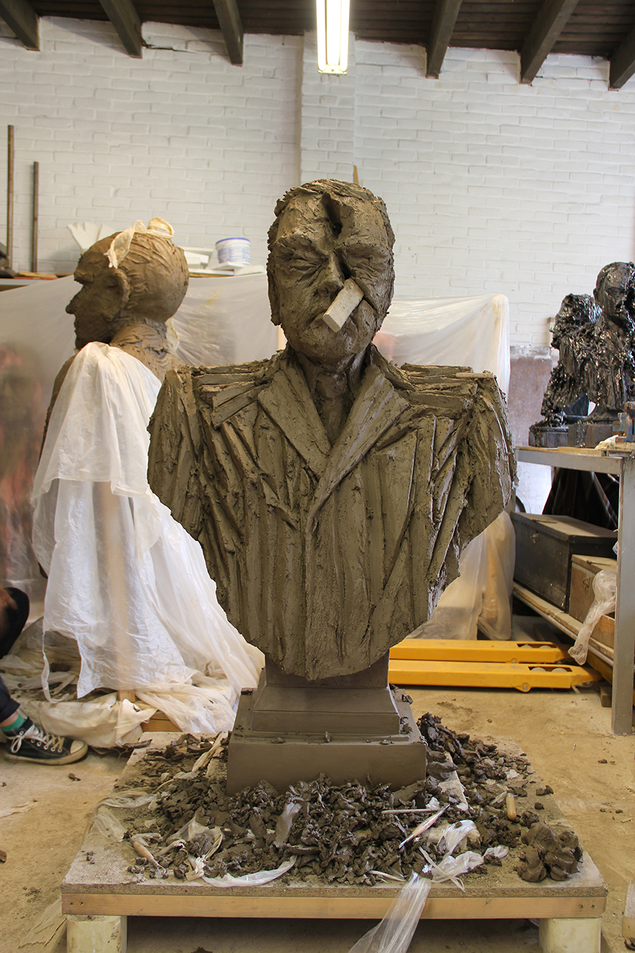 Voordat ik met deze serie begon verzamelde ik de afgelopen jaren eerst beeldmateriaal. Zowel van militairen in vol ornaat, vaak van internet geplukt, als ook van bustes in diverse musea. Kunsthistorische musea zoals het Victoria and Albert Museum in Londen zoals ook militaire musea bv in Beijing. Overal, ook al is de culturele achtergrond nog zo verschillend, vind je één en dezelfde vormentaal. Er bestaat een mondiale definitie van hoe een representatieve buste eruit hoort te zien.
