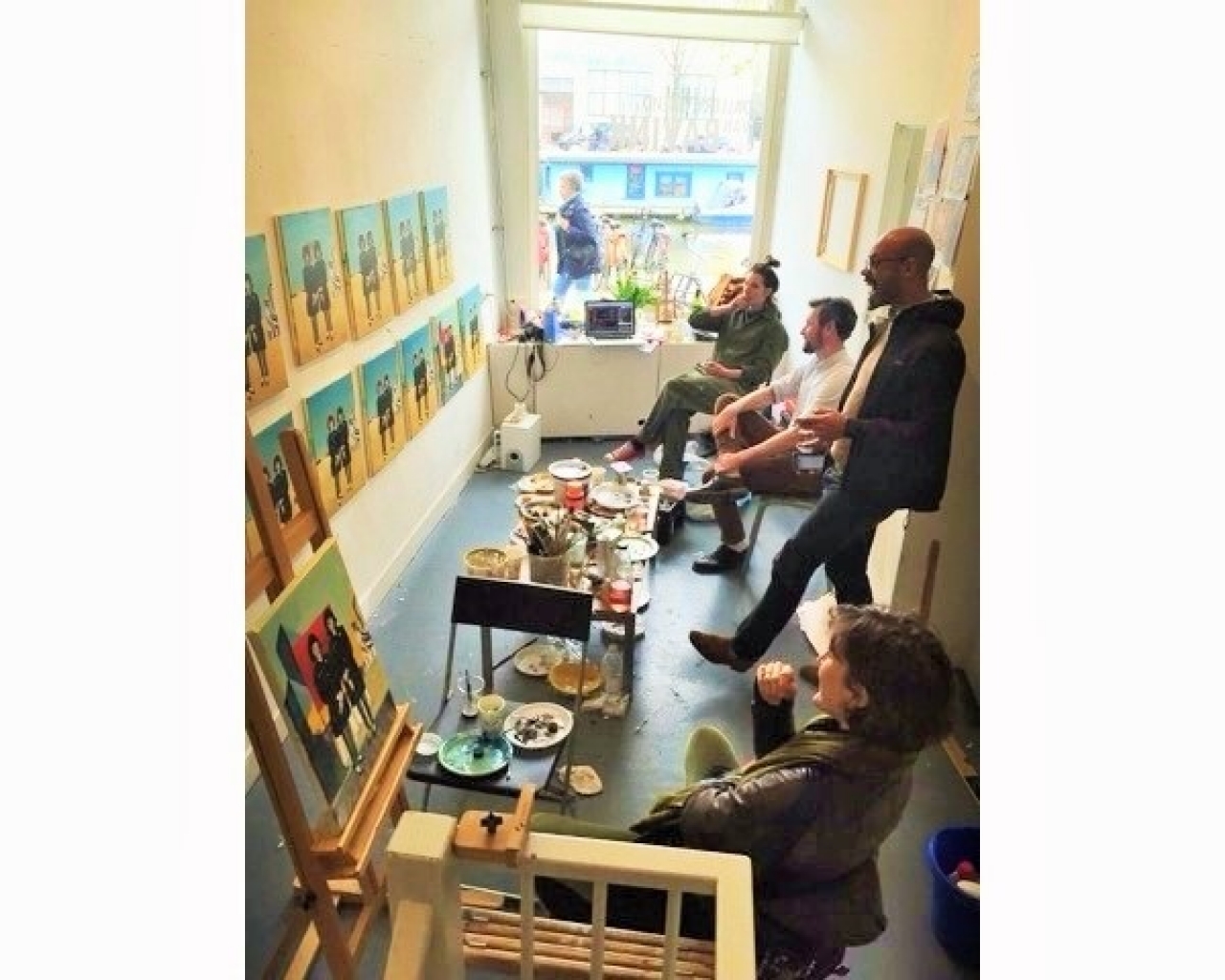 Het is een vreemde ervaring. De kunst die ik tot nu toe heb gekocht was altijd af. Ik denk dat dat voor de meeste kopers geldt. Weinigen zullen een opdracht geven en tijdens het maakproces met de kunstenaar in gesprek gaan. Weliswaar gaan wij niet letterlijk met jou in gesprek maar in indirecte zin natuurlijk wel: “ga door” of “stoppen” zijn imperatieve, eenzijdige mededelingen – althans zo voelt het – en jij zegt niks terug, anders dan dat je wel of niet voor het doek gaat staan. En iedere week moeten wij een beslissing nemen. Ik schreef je in mijn eerste brief dat ik had overwogen om het lege canvas te kopen en dat aan de muur te hangen en er zo een conceptueel project van te maken. Dat was omdat ik het een prachtig idee vond – en nog steeds vind – om een nieuwe manier van kunst produceren en verwerven aan de orde te stellen. Je zou kunnen zeggen, een hernieuwde vorm van opdrachtgeverschap, zij het met een beperkte ruimte voor de opdrachtgever – zeker in het begin omdat we zelfs geen idee hadden wat het onderwerp van het werk zou zijn.