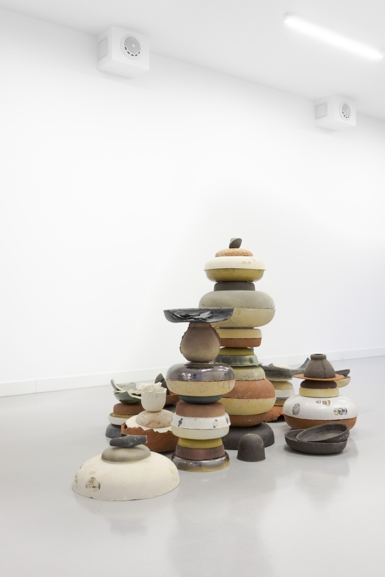 Toch wil hij zich niet laten vastpinnen. Dit is bewust: omdat zijn werk nog in ontwikkeling is en hij er zelf ook nog niet helemaal uit is, kan er nog het een en ander veranderen. Een andere reden hiervoor is zijn plan voor komend jaar. Hij gaat dan naar Londen om een masteropleiding aan de Royal College of Art te volgen. Na diverse tentoonstellingen in Nederland en enkele exposities in het buitenland te hebben gedaan, veel nieuwe mensen te hebben leren kennen een goed netwerk te hebben opgebouwd, is hij klaar voor een volgende stap in zijn ontwikkeling. Hij hoopt daar zijn denkraam nog helderder te krijgen en inzicht te krijgen in de keuzes die hij maakt. “Ik denk dat het essentieel is om nu, als jonge kunstenaar, nog heel erg open te staan voor nieuwe ontwikkelingen. Ook moet je in staat zijn om te spelen en niet altijd alles te willen begrijpen. Het is goed om te kijken wat het werk van jou vraagt, in plaats van wat jij van het werk vraagt. Het mooiste is dat je op een gegeven moment niet meer zelf verteld waar het werk over zou moeten gaan, maar dat het werk naarmate je meer produceert uit zichzelf resoneert waar het over gaat.” Een voorbeeld hiervan is Luxury Stacks, een installatie van opgestapelde schalen die hij maakte tijdens zijn verblijf in het Keramisch Werkcentrum te Den Bosch. Het is een werk wat hij niet snel uit zichzelf zou bedenken, maar waar hij toevallig op gestuit is. “Ik had nog nooit eerder met keramiek gewerkt. Het is een materiaal wat heel mooi balanceert tussen ambacht en nijverheid, beeldende kunst en design. En het heeft ook wel het gevaar dat het extreem kitsch kan worden, wat ik ook wel een leuk gevaar vind. Toen ik net begon, ben ik de ideeën en werkwijze die ik al had gaan toepassen op die klei. Maar dat werkte helemaal niet. Alles viel de hele tijd uit elkaar en het was een groot drama. Ik ontdekte dat ik mijn concept van het ene materiaal niet klakkeloos kon vertalen naar het andere materiaal. Dus moest ik mezelf als het ware leren kleien. Toen ben ik rond gaan lopen in het Keramisch Werkcentrum en vond allemaal oude mallen van schalen van andere residents. Ze waren afkomstig uit verschillende jaren, het voelde bijna als een soort archeologische vondst. Ik ben die schalen gaan gieten met allemaal verschillende soorten klei, dat was een soort excuus voor mij om te leren hoe je met het materiaal om moest gaan, op wat voor verschillende soorten temperaturen je kon bakken en wat voor verschillende soorten glazuur je kon gebruiken. Naarmate ik er meer maakte ontstonden er een soort opstapelingen in mijn atelier, puur uit opslagredenen. Dat verraste me, omdat ik ontdekte dat een stapeling eigenlijk iets is wat vaker terug komt in mijn werk: het samendrukken van meerdere materialen. Het is een hele primitieve sculpturale handeling. Ik vond het een interessant gegeven waarmee ik verder ben gegaan en zo ontstond het werk Luxury Stacks. Het heeft de toon gezet voor een werkproces dat ik nu eigenlijk door probeer te voeren; het accepteren van toevalligheden en het hebben van losse objecten en die op een bepaalde manier combineren waardoor er iets nieuws ontstaat. Het beeld kan alleen bestaan door op die manier te zijn gecombineerd en heeft daardoor een nieuwe fysieke kracht gekregen.”
