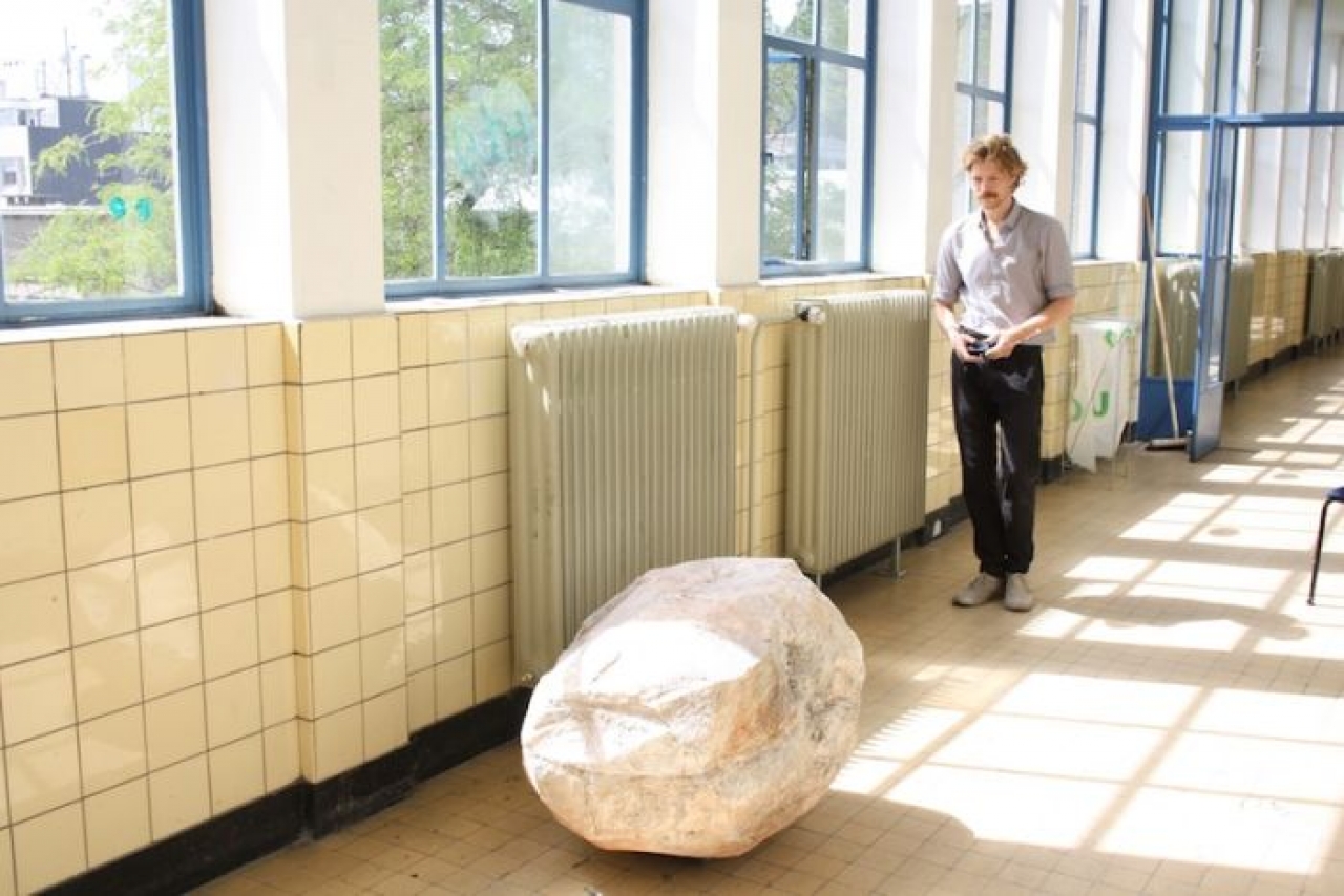 Na zijn studie houdt hij zich bezig met het reproduceren van de natuur uit industriële materialen. Zo maakt hij een mobiel landschap in de vorm van een berg op een karretje, met het idee dat je de berg zo altijd met je mee kan nemen. We beleven onze omgeving tegenwoordig steeds meer op een indirecte wijze, aan de hand van foto’s op internet en applicaties als Google Streetview. Het werk lijkt een reactie te zijn op onze huidige maatschappij, die zich steeds meer digitaliseert en verder verwijderd van de werkelijke natuur. Ook maakt hij verschillende nepstenen, een natuurlijke vorm die hij uit zijn hoofd met zijn handen maakt. Met die stenen is hij gaan experimenteren. Hij heeft ze bijvoorbeeld gescand waardoor hij de stenen als het ware plat maakt en een spanningsveld creëert tussen het twee- en driedimensionale vlak. Hij zet de afbeelding over op doek, maar in plaats van deze op te spannen maakt hij er nieuwe sculpturen van waardoor het zich eindeloos herhaalt. Op een vergelijkbare manier houdt hij zich later ook bezig met water, wat resulteert in een aantal Liquidity Pieces: aan de muur bevestigde golvende platen met de karakteristieken van water. Ze zitten vol contrasten, de materialen zijn robuust maar ook transparant, snijdend maar ook glad en bevinden zich op een soort spanningsvlak tussen sculptuur en schilderij.
