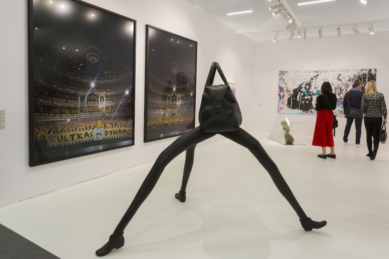 In the middle floor we face the big names within the contemporary art world and the floor changes to be carpeted, to our left received by a work by Gilbert and George presented by Thaddeus Ropac; to the right an amazing sculpture booth by Gagosian featuring works by Duane Hanson, Chris Burden or Alberto Giacometti among other top names, all of this without any label. It is sometimes very difficult to choose among all the big blue chip galleries, because you would like to take everything, but it was nice to see the effort of Spanish gallery Heinrich Ehrhardt, very well known within the German art market bringing both a selection of names such as Günther Förg, Imi Knoebel or Martin Kippenberger next to not so well known Spanish artists like Kiko Pérez, Fernando García or Julia Spínola. It was also interesting to see the booths of some Berlin galleries just before the Gallery Weekend, as a kind of sneak peek, like the new sculptures of Anna Uddenberg at Kraupa-Tuskany Zeidler or the works by Alicja Kwade and Erwin Wurm at König Galerie.
