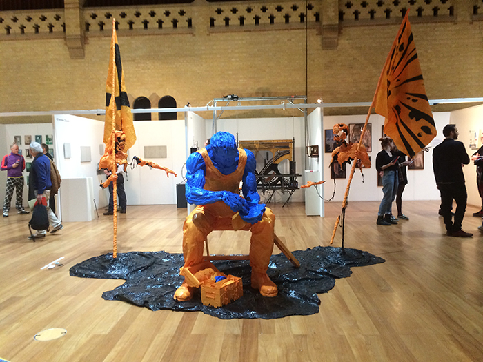 Dat laatste is een prettige toevoeging, want de kunstenaars staan veelal bij hun werk in de startblokken je er iets over te vertellen. ‘Een kleine driehonderd kunstenaars meldden zich aan voor de beurs waarna ons selectiecomité de selectie kunstenaars eruit pikten die we vandaag zien’ aldus Mette Samkalden, de nieuwe directeur van de beurs. Het is een kakelbonte mix aan diversiteit die soms heel mooi samengaat en soms pijn doet aan je ogen. Er valt iets te ontdekken.