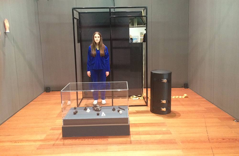 Midden in de installatie van Ottenhof staat een jong meisje met lang donker haar en een kobalt blauw mantelpak. Ze staat binnenin een constructie van staal en staart je aan vanachter een dubbelzijdige spiegel die aan een van de buizen hangt. Ze lacht zo lieflijk dat alleen het aanzien hiervan al een ongemakkelijk gevoel geeft. Wanneer je haar vragen stelt praat ze terug met een hoog afwachtend stemmetje, af en toe neemt ze een paar stappen buiten de installatie; haar comfort zone. Het meisje ziet eruit alsof ze er geboren is en thuis hoort in het geheel: haar aanwezigheid heeft ook iets kwetsbaars en vervreemdends. Deze ongemakkelijke sfeer is precies wat Ottenhof wilt bereiken. ‘Ik zie aan de reacties van mensen dat ze in eerste instantie geïnteresseerd zijn, maar uit ongemakkelijkheid daarna zo snel mogelijk weglopen.’.