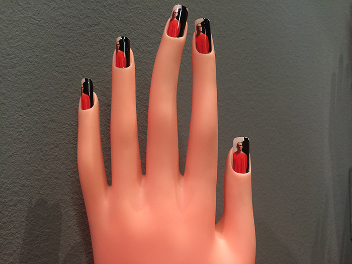 Twee handen aan een wand worden gesierd door lange kunstnagels. Wie dichterbij komt ziet op de nagels een portret van een man in oranje gewaad. Het is James Wright Foley, een Amerikaanse freelance persfotograaf die twee jaar terug gevangen is genomen in Syrië.‘Hij werd op gruwelijke wijze onthoofd door leden van de IS’, vertelt kunstenares Marijn Ottenhof, die van een afstand naar de performance in haar installatie kijkt. Het feit dat ze enerzijds nail-art reclames en anderzijds schokkende nieuwsfeiten te zien krijgt op social media zoals Facebook, creëren bij haar een diep gewortelde angst. Samen gaan bovenstaande feiten een afschrikwekkende relatie aan. Eenzelfde soort ongemakkelijkheid ervaart Ottenhof bij middelen die juist een gevoel van veiligheid zouden moeten bieden, zoals de vliegtuigriemen die strak rondom een zwart object in haar installatie zijn gespannen. Ze geven haar een verontrustend en benauwend gevoel.