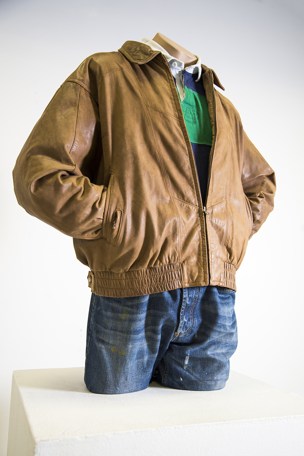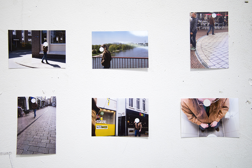 Jaap Hentenaar woont al jaren in Arnhem en sinds hij daar is komen wonen ziet hij op straat vaak dezelfde man lopen. Deze persoon draag sinds dat Hentenaar hem tegenkomt altijd dezelfde kleding. Wanneer je hem voor het eerst ziet, valt hij niet op en bij de tweede ontmoeting ook niet, maar wat beweegt iemand om altijd, jarenlang, hetzelfde eruit te zien? Hentenaar is hem gaan archiveren op afstand en heeft een verzameling van foto’s aangelegd waarin zij elkaar kruisen op straat of waarin hij hem in de verte ziet rondlopen. Op de afgedrukte foto’s die sieren aan de wand zijn Baldessari-achtige stippen geplakt, we zien het gezicht van de man niet, alleen de bruine leren jas en de donderblauwe spijkerbroek. Het werk van Jaap Hentenaar kenmerkt zich door serendipiteit; een vondst die je opdoet terwijl je niet aan het zoeken bent.