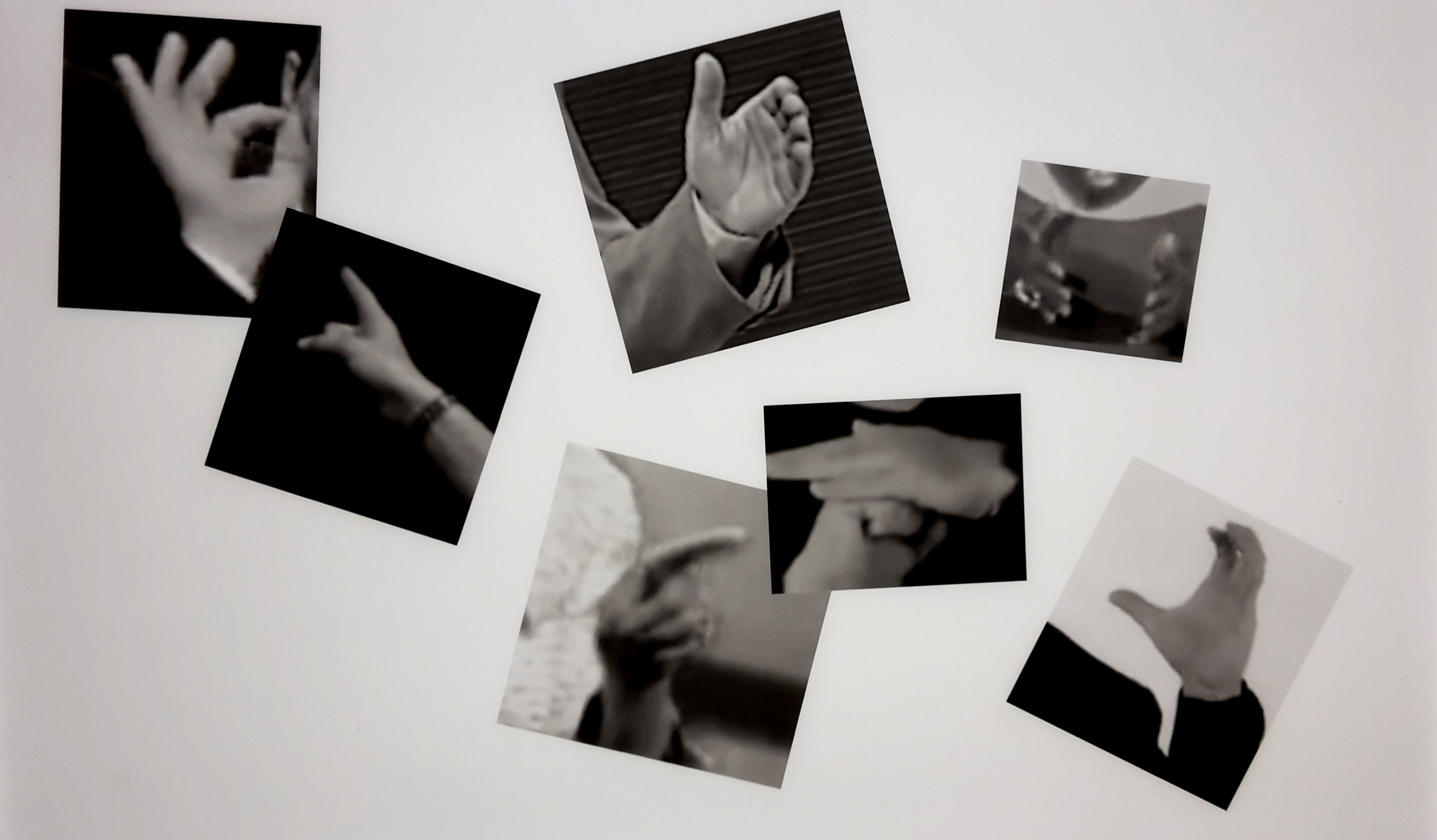 Eline de Bruijn doet onderzoek naar lichaamstaal en gebaren die enkel werken in een interactie tussen twee personen. Deze gebaren zijn vaak troostend, bevestigend of juist uitdagend. Aan de muur hangen lichtbakken met daarop archiefbeelden van gebaren. Het lijkt een verzameling te zijn van nieuwsfoto’s uit ons dagelijks leven. Het laat de universaliteit van onze communicatie zien. Waar je ook woont of wie je ook bent, iedereen beweegt zijn handen op dezelfde manier om informatie over te brengen.