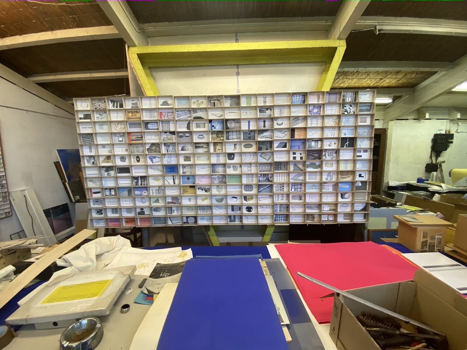 FS: Toen ik je vroeg of ik eens op atelierbezoek mocht komen vertelde je me dat je dan eerst een aantal weken nodig moest hebben om je studio te ontruimen. Wat staat er allemaal? En wat ben je momenteel aan het maken?