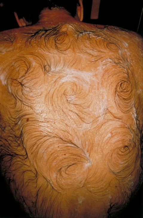 Ken je die foto van Mona Hatoum: Van Gogh’s back (1995)? Het zwarte haar op de rug van een man is natgemaakt en gestileerd in het wervelende patroon van de hemel van het bekende schilderij De sterrennacht van Vincent van Gogh. Zo intiem die rug. Net als de geur van de wax die ik me voorstel tijdens het verhaal van mijn vriendin. Alsof ze het me niet alleen vertelt, maar ik erbij ben en we het samen doen.