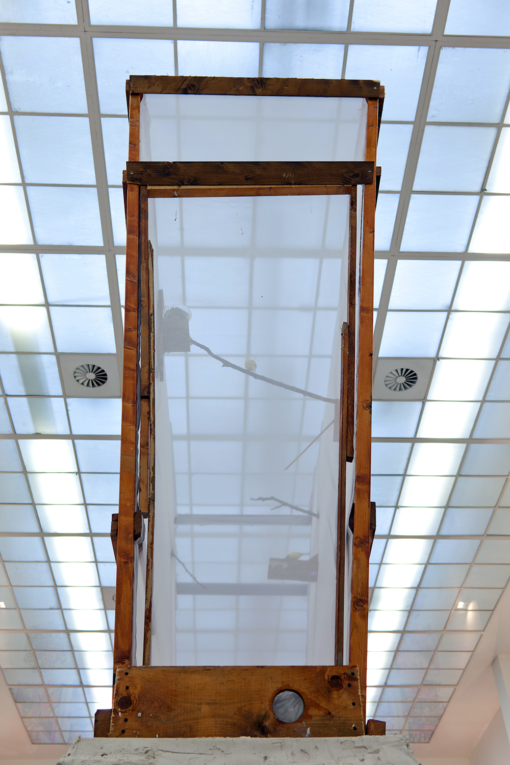 Terwijl ik door zijn atelier loop, zie ik verschillende losse sculpturen staan. Het werk van Callender bestaat veelal uit installaties, waarvan hij de losse elementen in zijn atelier maakt. Vaak figuren die mee gaan door meerdere installaties heen en langzaam een eigen leven krijgen. De personages neemt hij steeds mee naar de locaties waar hij zijn installaties maakt en de afzonderlijke elementen samenbrengt. In zijn werk zoekt Yair naar herkenbare vormen, uitingen en emoties die hij als een karikatuur uitvergroot. ‘Je kunt je eraan relateren. Woorden berijpt iedereen, maar als kunstenaar ontwikkel je een nieuwe taal. Je spreekt geen Nederlands of Engels. Hoe zorg je ervoor, ook al verzin je zelf een eigen taal, dat mensen het kunnen begrijpen. Er moet een overeenstemmend element zijn. Daarom gebruik ik menselijke expressies en lichaamsvormen, ze zijn heel universeel en leveren een band met de toeschouwer.’ Dit is ook het geval bij ‘Monument II – Nature’, die ik eerder heb gezien tijdens de tentoonstelling ‘This is the School and the School is Many Things’ bij de Koninklijke Academie van Beeldende Kunsten in Den Haag. Je ziet een grote gipsen vorm met bovenop een houten frame, bekleed met een soort gaas, later kom je er plotseling achter dat er levende vogels in zitten. Het werk is een ode aan de natuur en onderdeel van een grotere serie monumenten. Ik vraag hem waarom hij monumenten maakt. ‘Mijn monumenten zijn een soort sculptuur voorbij een sculptuur. Het is een overtreffende trap. Dit geldt ook voor ‘Monument II – Nature’, dat ik heropgebouwd en vernieuwd heb vanuit mijn eerdere werk ‘Monument I – Sky’. Vroeger probeerde men het goddelijke te vangen met kunst. Men streefde naar het heilige, probeerde God te vangen in muziek, een sculptuur of de architectuur van een kerk. Maar God is per definitie voorbij de mens. Dus alles wat je doet als mens, is per definitie niet goddelijk. Daardoor veroorzaak je een eindeloos streven wat je nooit kan grijpen. Toch worden er met dat streven bijzondere en unieke dingen gemaakt.’ Met zijn monumenten probeert ook Yair verder te komen en zijn werken richting het onhaalbare goddelijke te duwen. ‘Monumenten vereren iets, maar we hebben eigenlijk geen echte helden meer. We hebben wel een koning, maar om Willem nou op zo een sokkel te zetten, dat is ook niets. Dat heeft niet dezelfde waarde. Dus wat blijft er dan nog over? Voor mij is dat de natuur, de liefde, abstractere zaken.’ Wanneer is iets perfect en kan kunst wel perfect zijn, of blijft het bij een streven? ‘Het kan in ieder geval nog veel perfecter dan wat ik tot nu toe heb gedaan. Het is voor mij een subliem streven.’